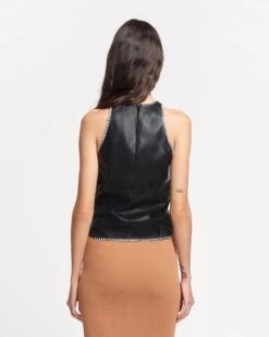 The Alixe top is made from a deadstock tech chiffon fabric – the smocked finish distorts the zebra print to create a densely textured appearance. It is cut for a close fit enhanced by a scoop neck.
