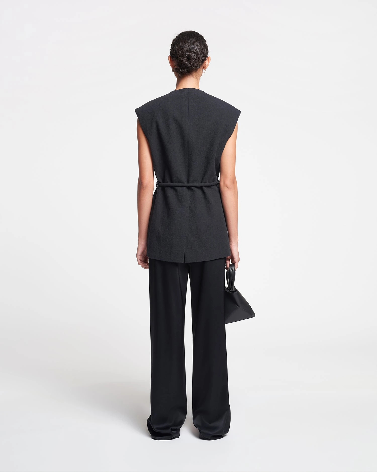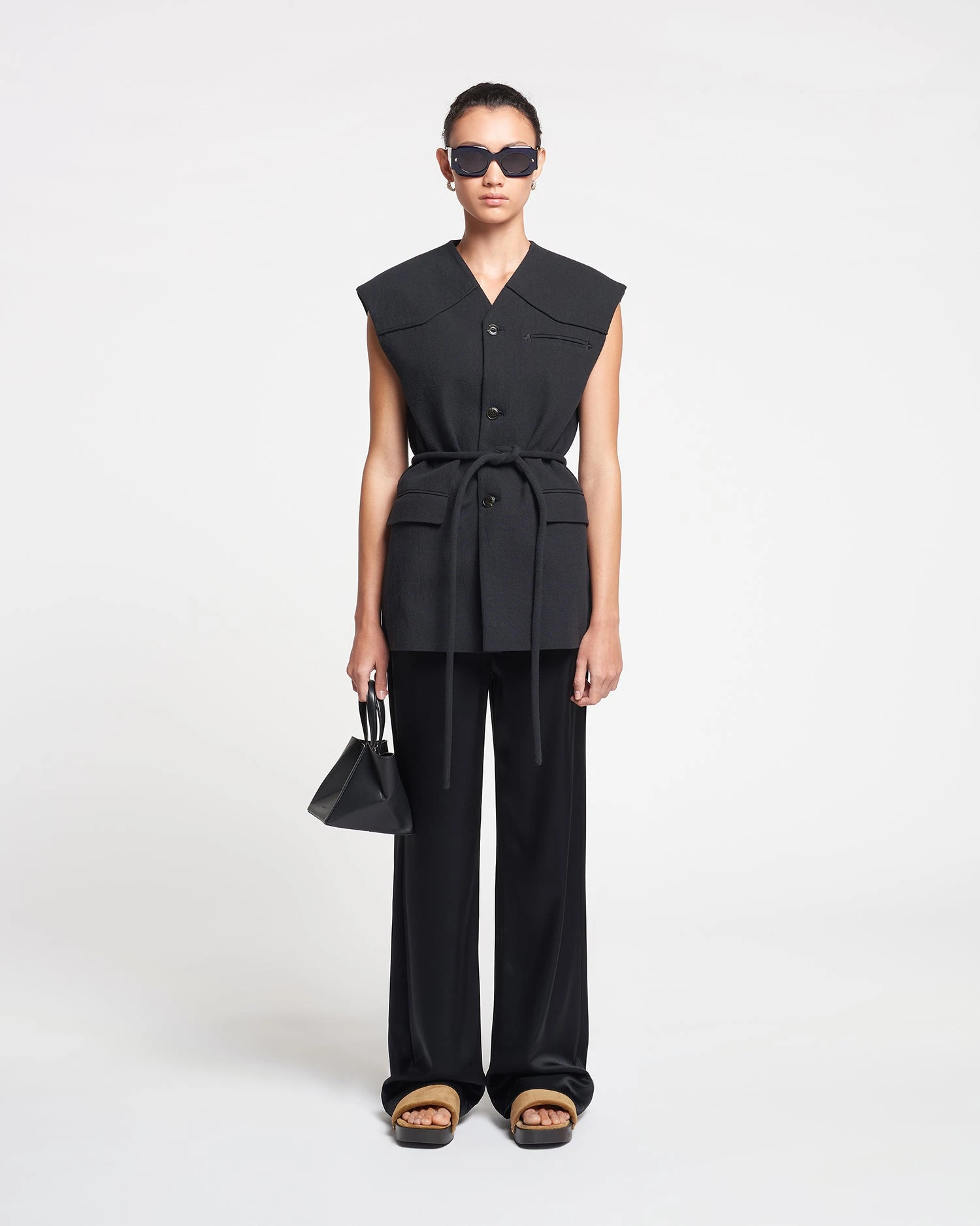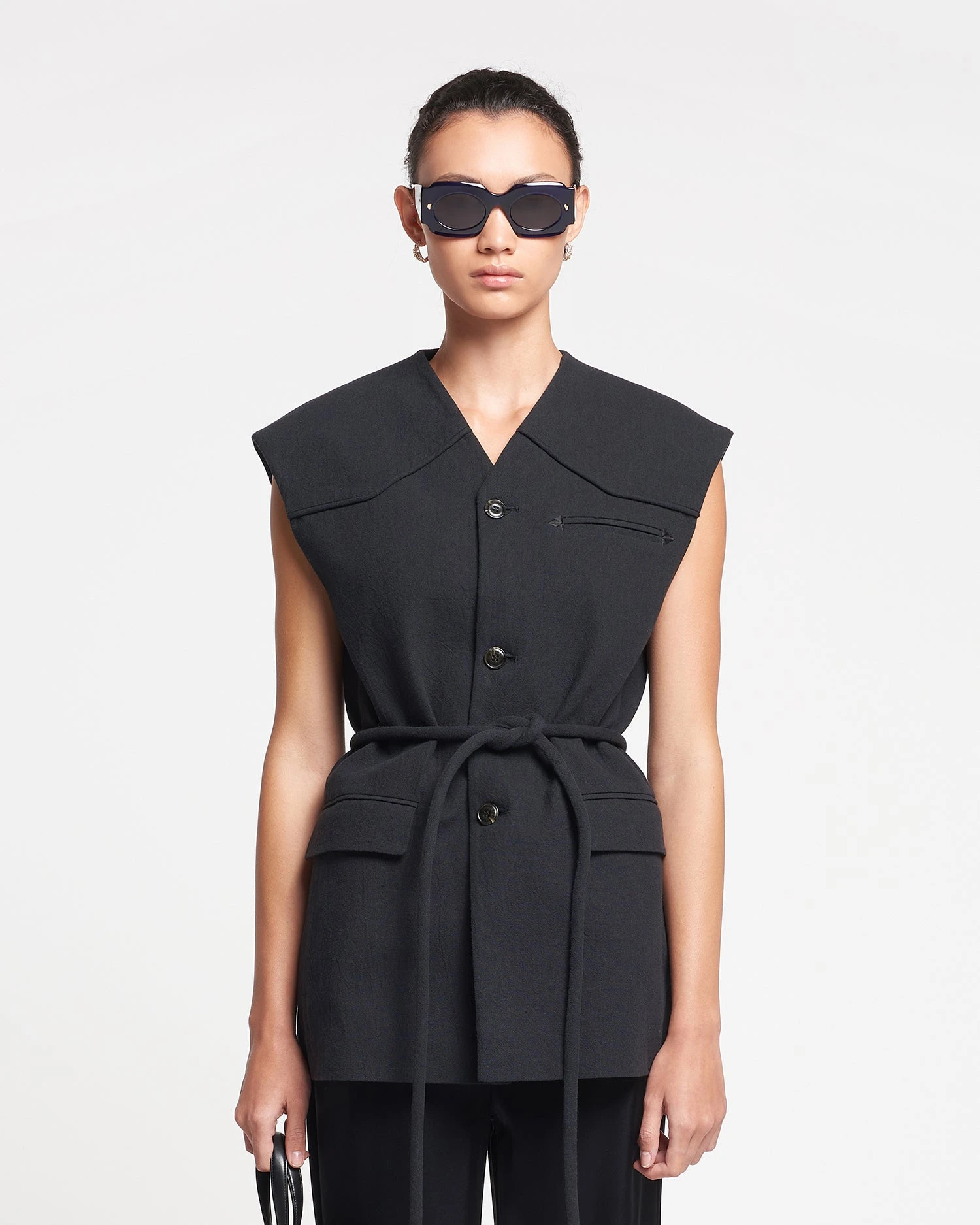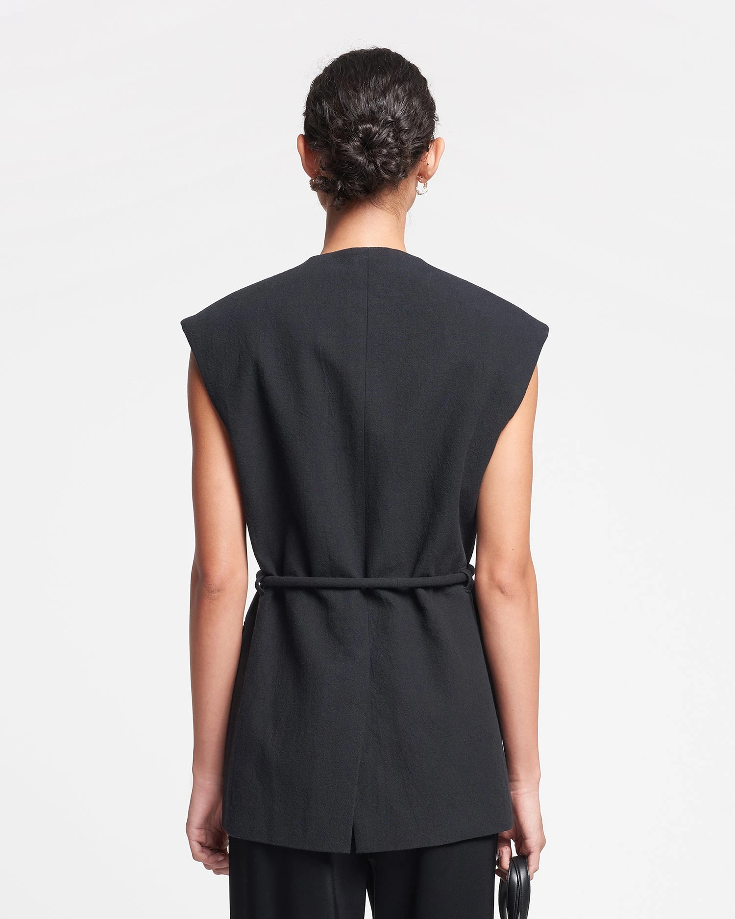 The Astrid vest sits perfectly between classic and contemporary. It is tailored from washed canvas for a boxy fit that can be cinched with the self-fastening tubular belt. Western-inspired details at the yoke complete the look.