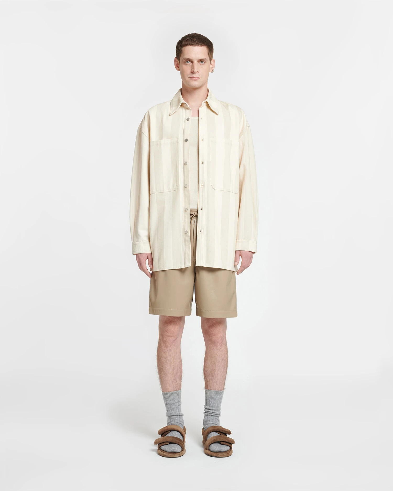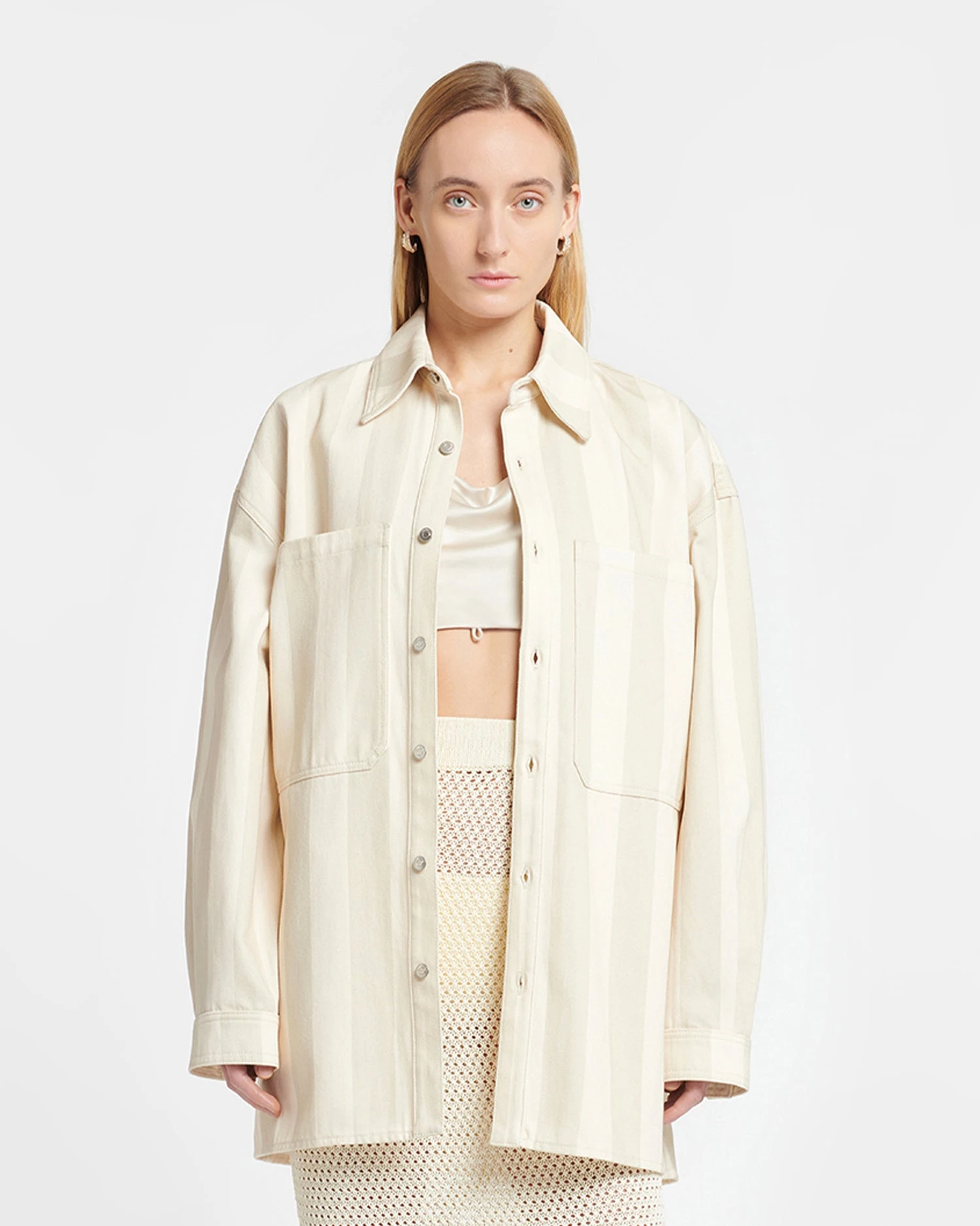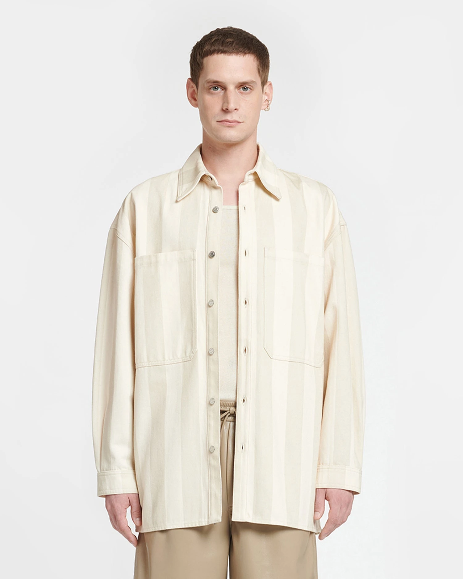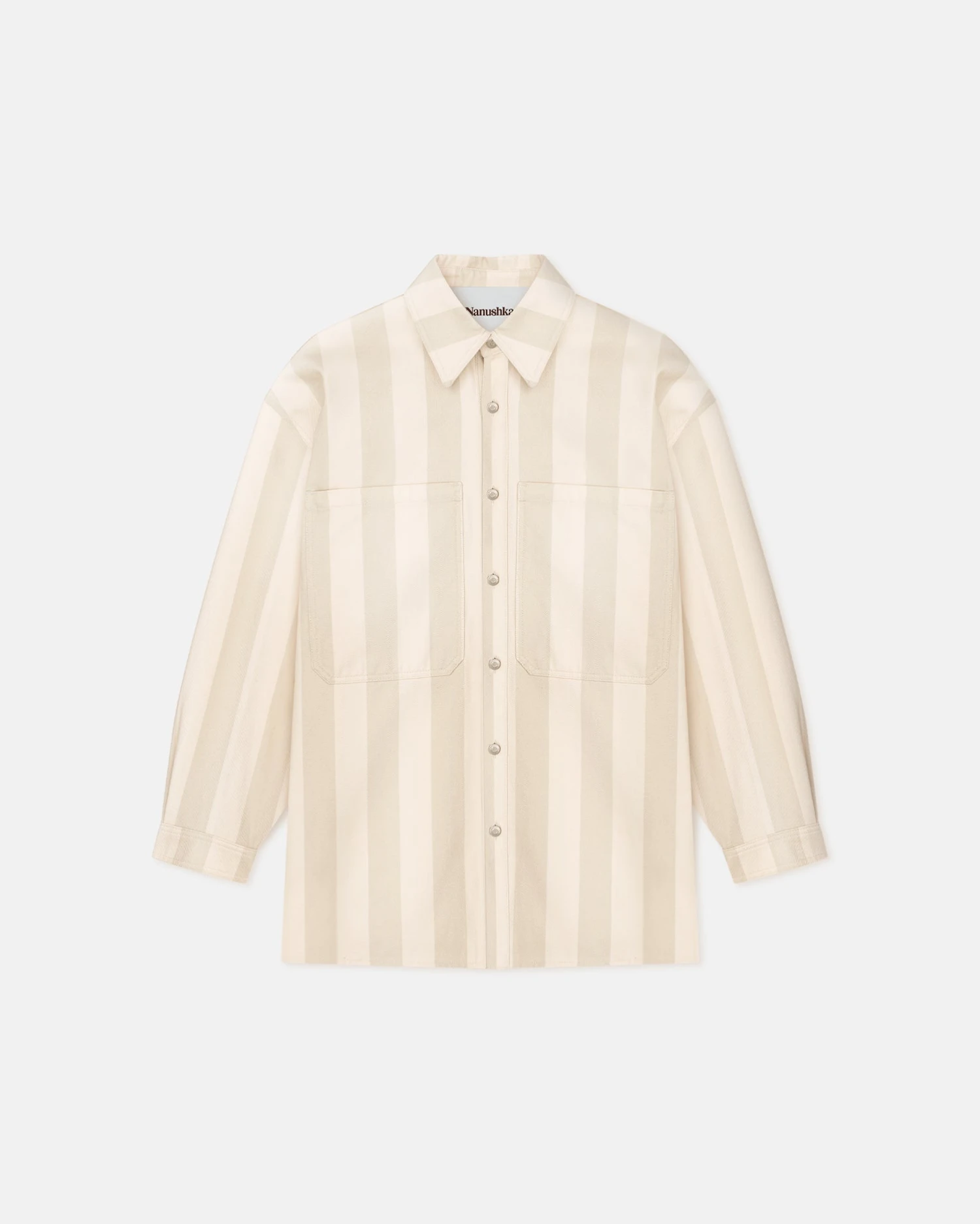 An elevated take on a weekend staple, the Beaux shirt is cut from organic cotton denim in a creme tone. The boxy silhouette is punctuated by outsized pockets on the chest.