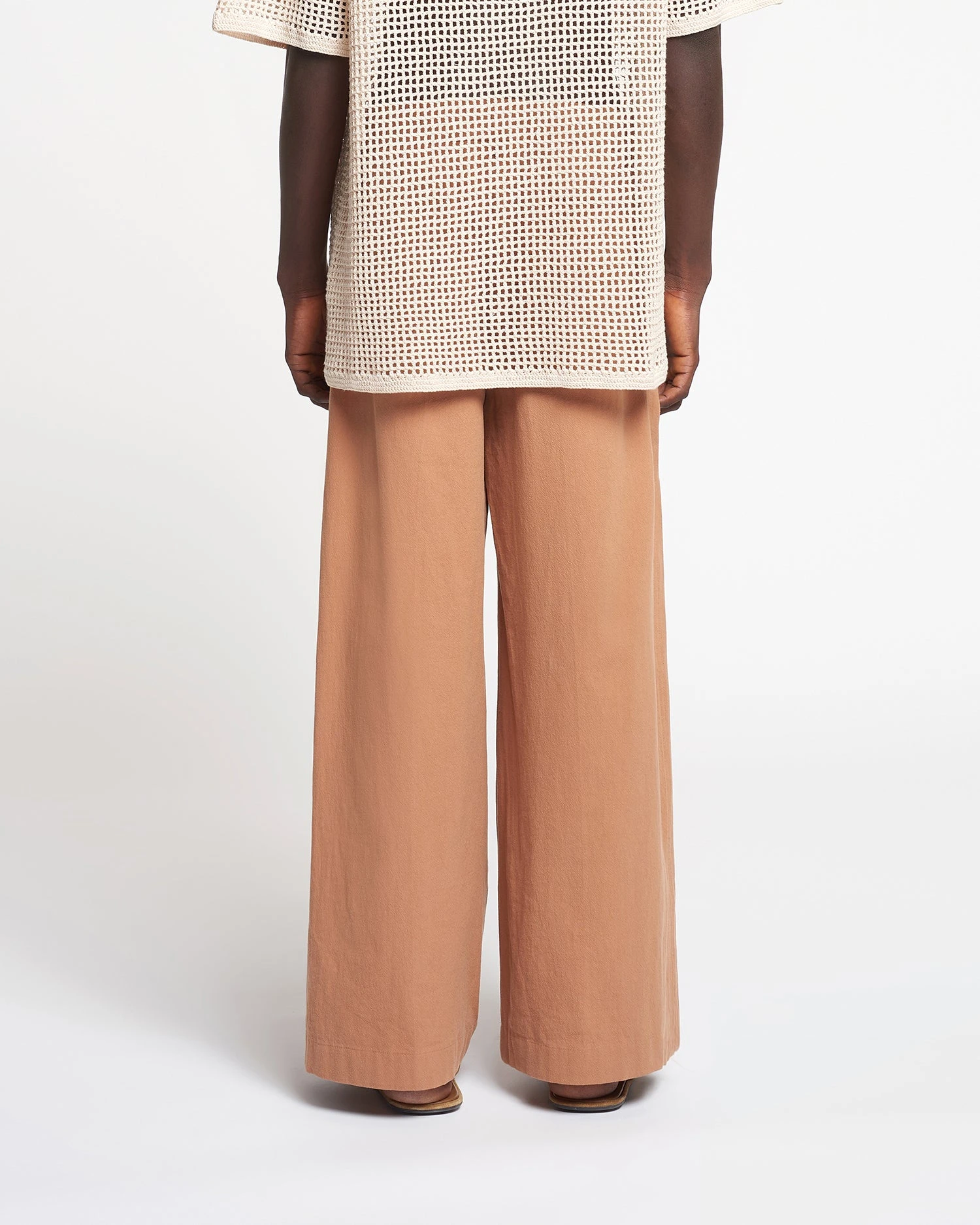 With exaggerated wide legs, the Borre pants have a fluid, chap-like silhouette modelled on classic Western styles. They are tailored from utilitarian washed calico and have sharp pressed creases.