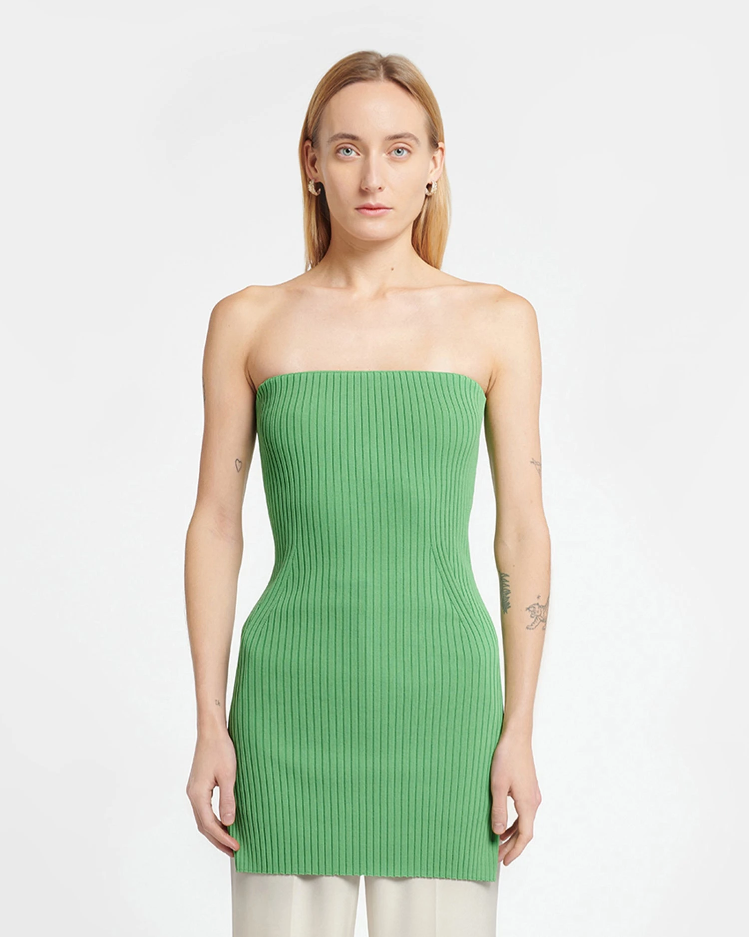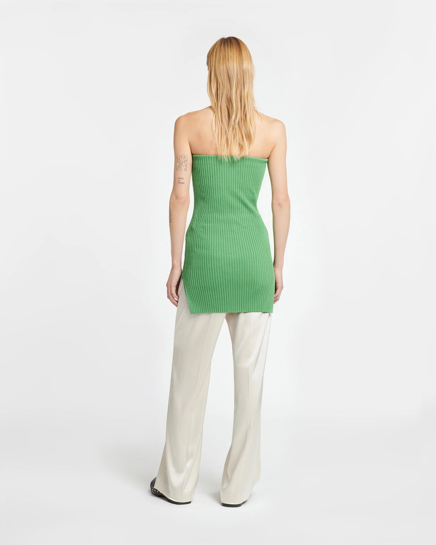 The Brynn is crafted from a sleek matt viscose that adds texture to the vibrant green top. The sleeveless body-hugging silhouette makes this piece perfect for warmer seasons and for evening events. Style alone or with the matching pants.