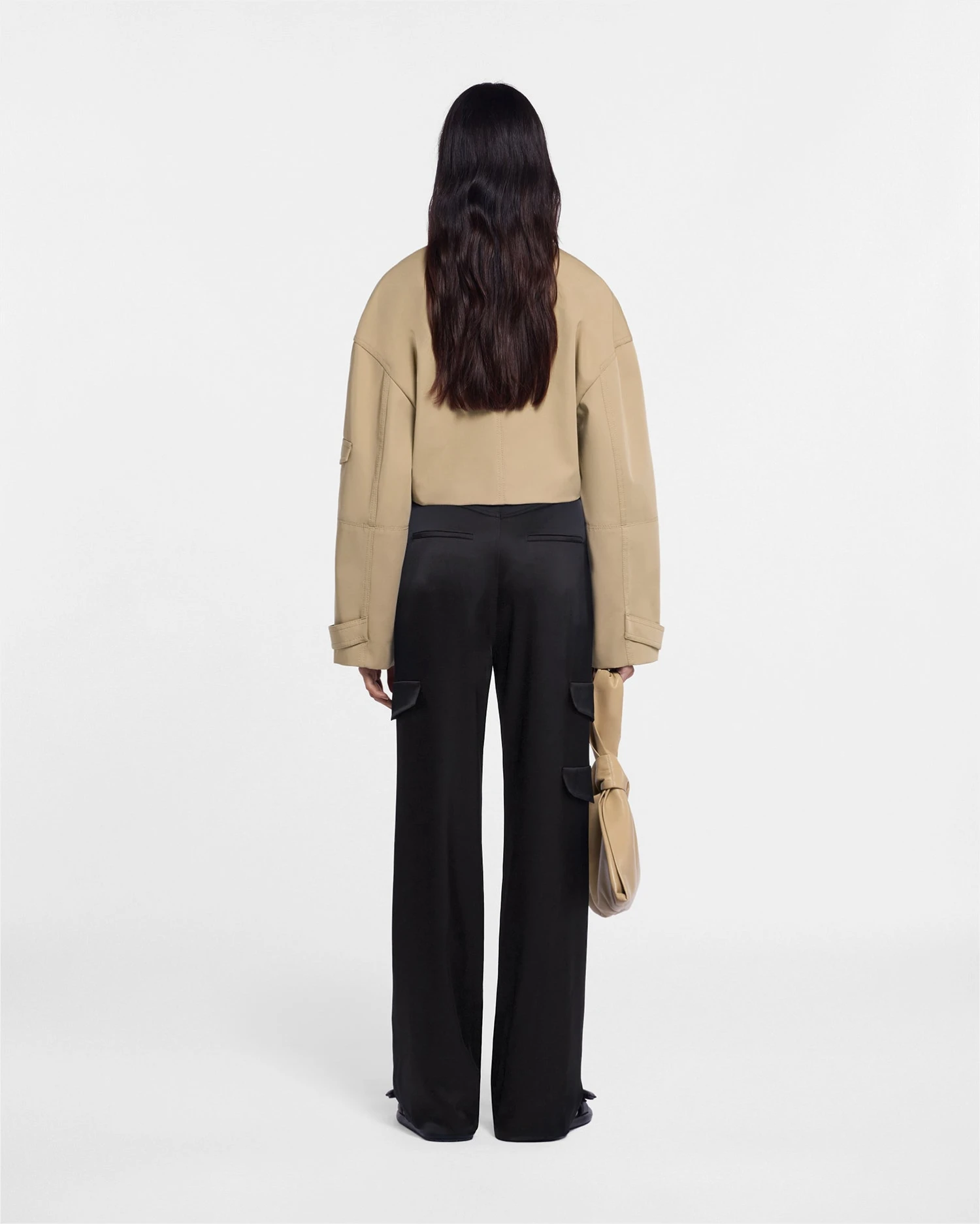 The Cais pants bring easy elegance to the classic cargo style. They are crafted from our signature glossy slip satin, sit high on the waist and are dotted with utility-inspired pocket flaps.