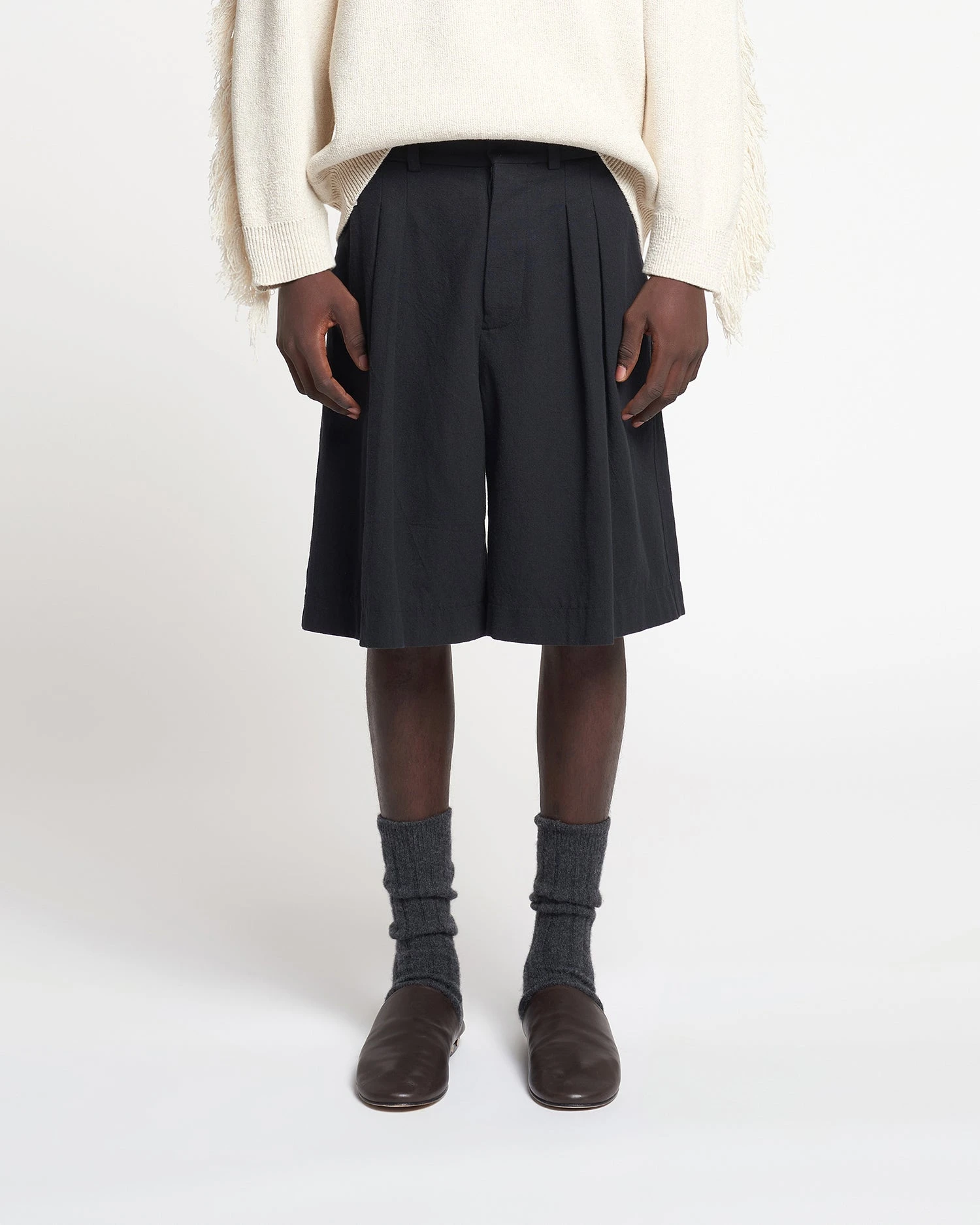 Our design philosophy centres around the elevation of wardrobe foundations. Expertly tailored from soft washed canvas, the Carsten shorts sit high on the waist before falling in a fluid A-line shape. Sharp pressed creases enhance the voluminous silhouette.