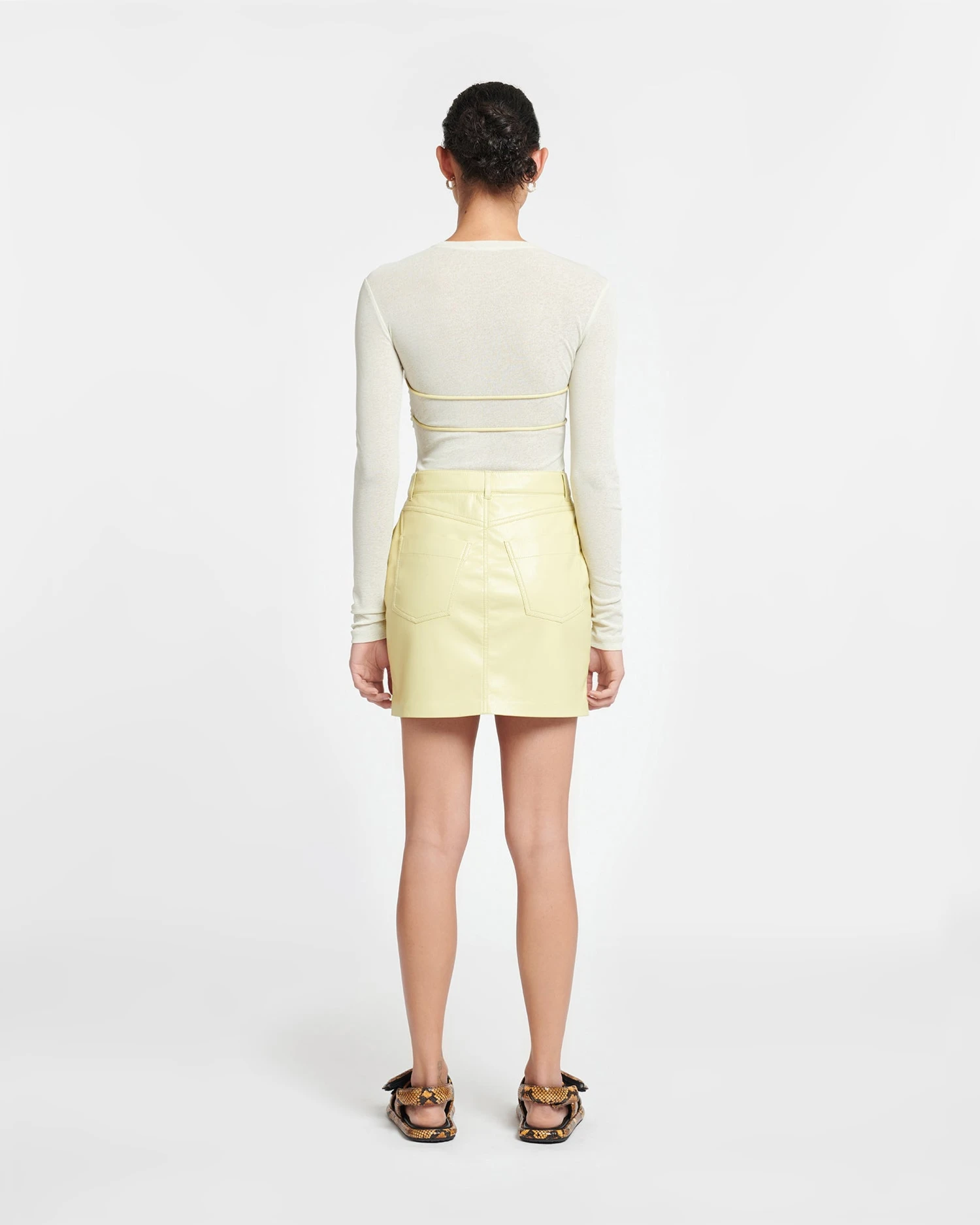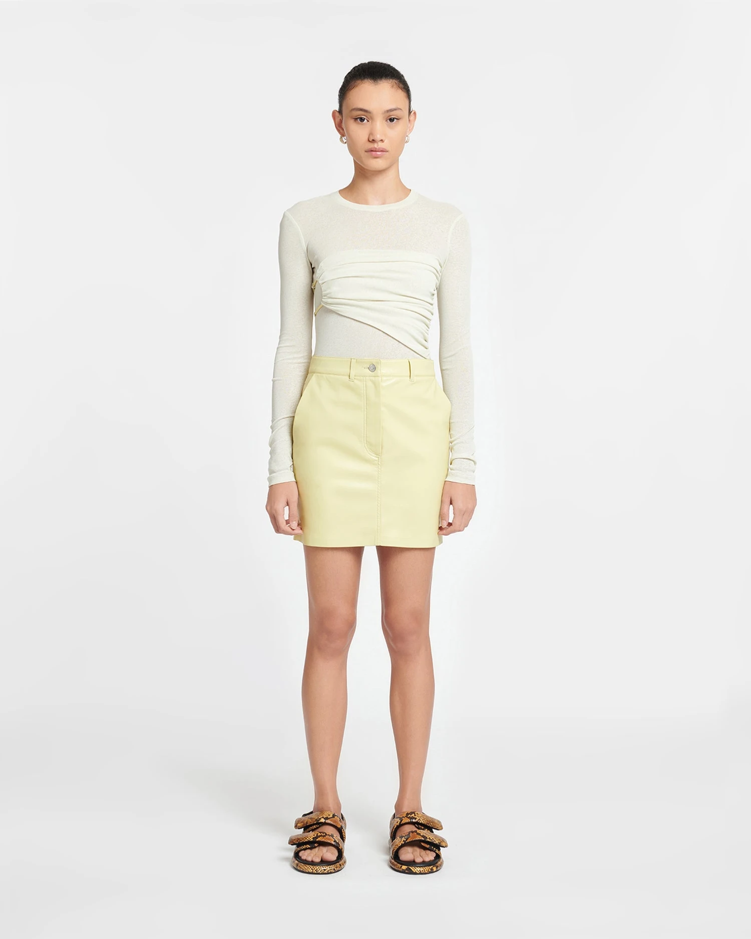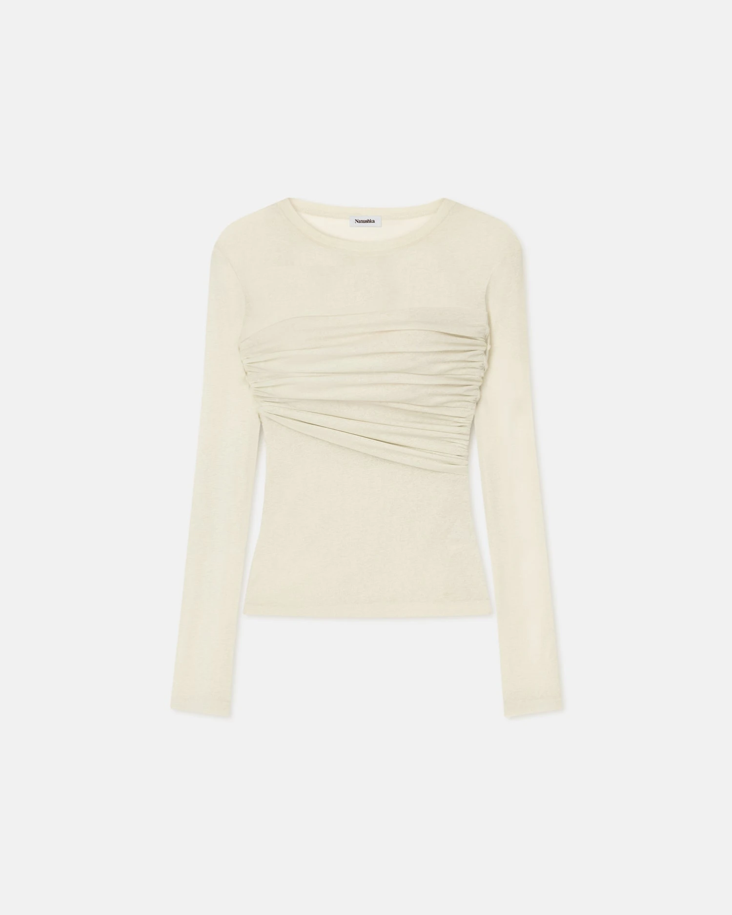 Hybrid design techniques are a Nanushka signature. The Deva top is crafted from our signature mesh jersey for a figure-sculpting fit accentuated by gentle ruching around the waist.