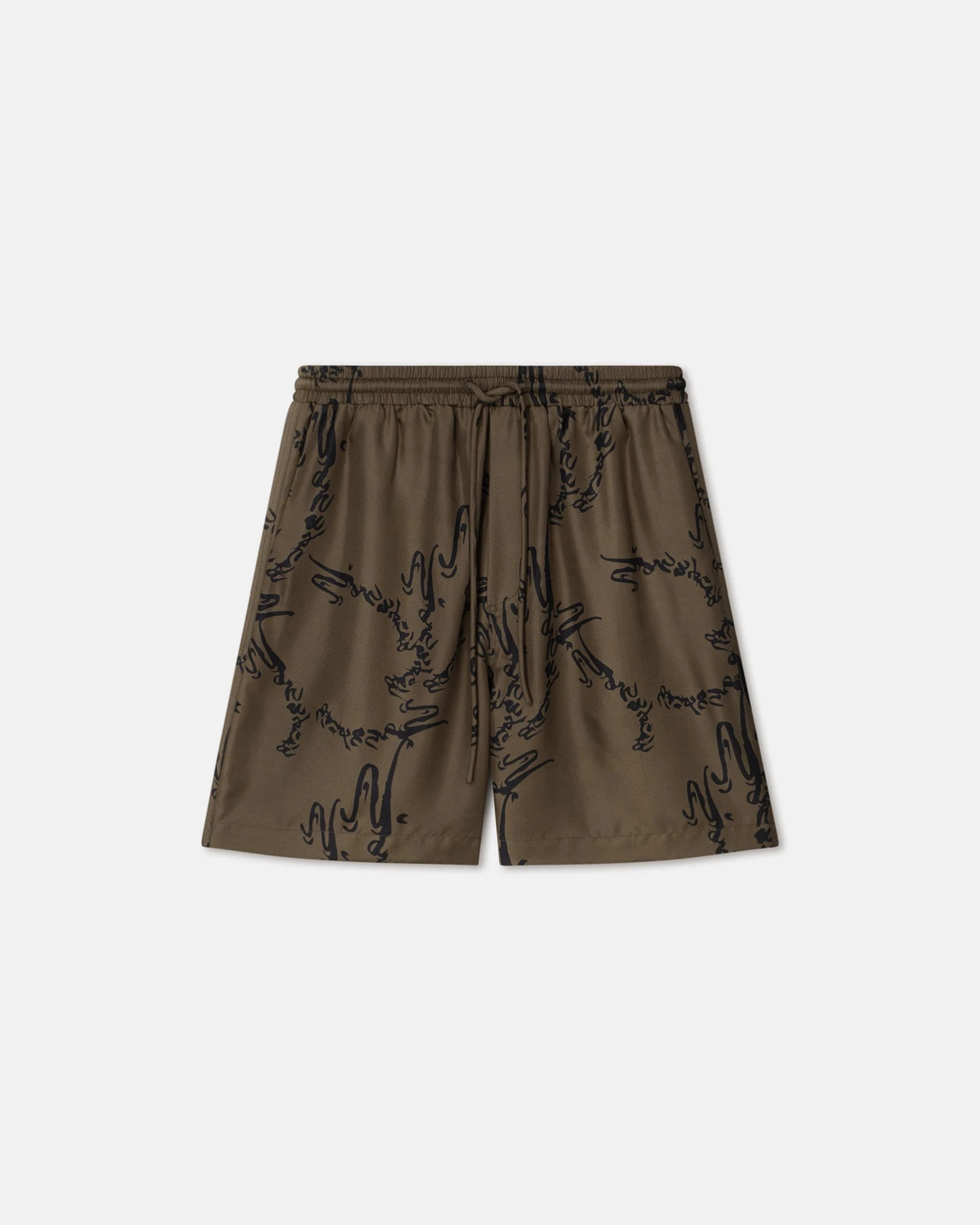 The Doxxi shorts are reimagined in silk twill with an expressive calligraphic print. Easy-to-wear yet statement-making, they’re crafted to a relaxed silhouette with a drawstring waist and knee-length hems.