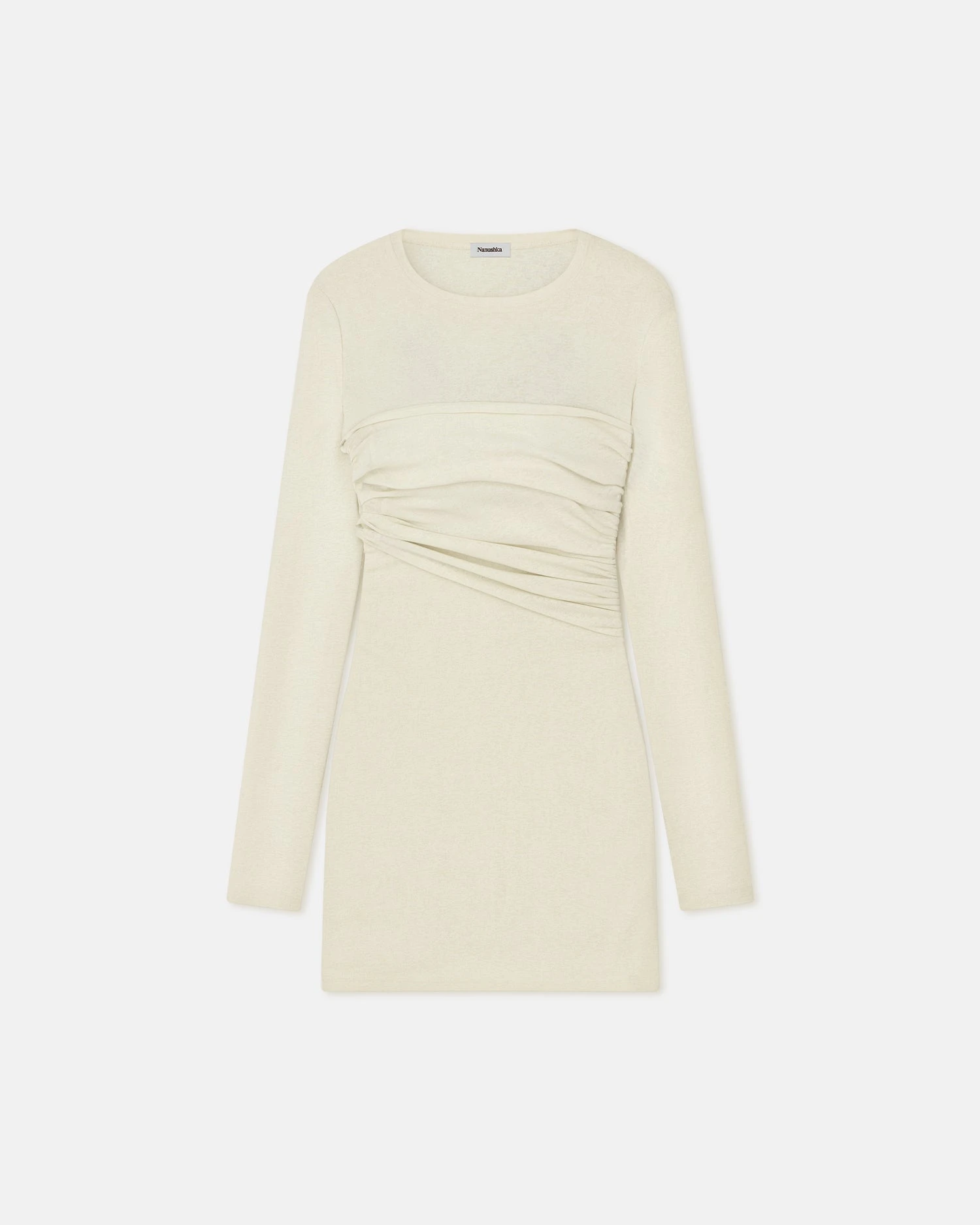 The Feiko dress is crafted from our signature mesh jersey for a figure-sculpting fit accentuated by gentle ruching around the waist. The white wax tone is effortlessly elegant.