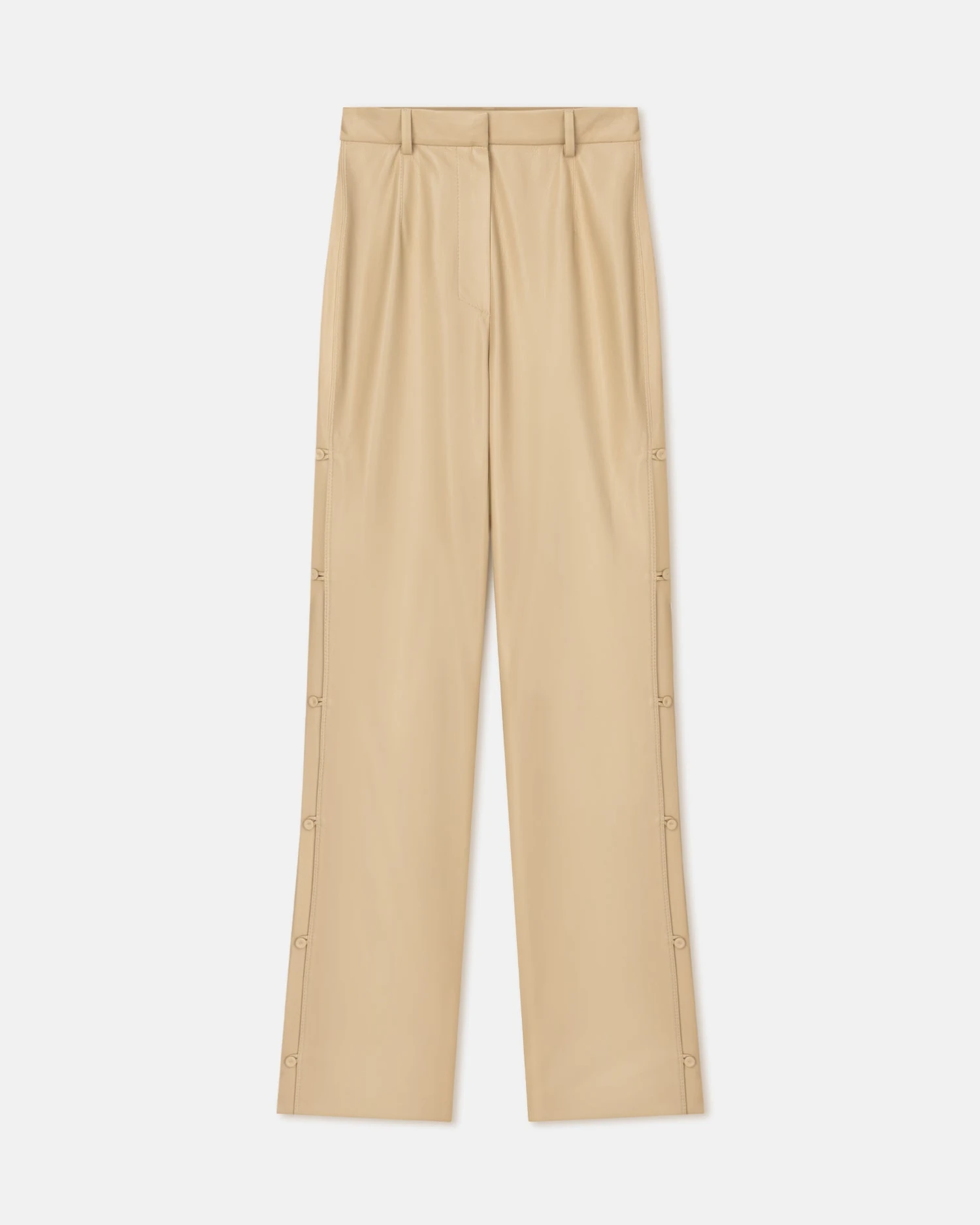 The Felina pants are distinguished by button and loop fastenings along the side, so they can also be worn as a split-hem style. They are crafted from our signature Okobor™ alt-leather and come in a light almond tone – coordinating with other modular pieces in the collection.