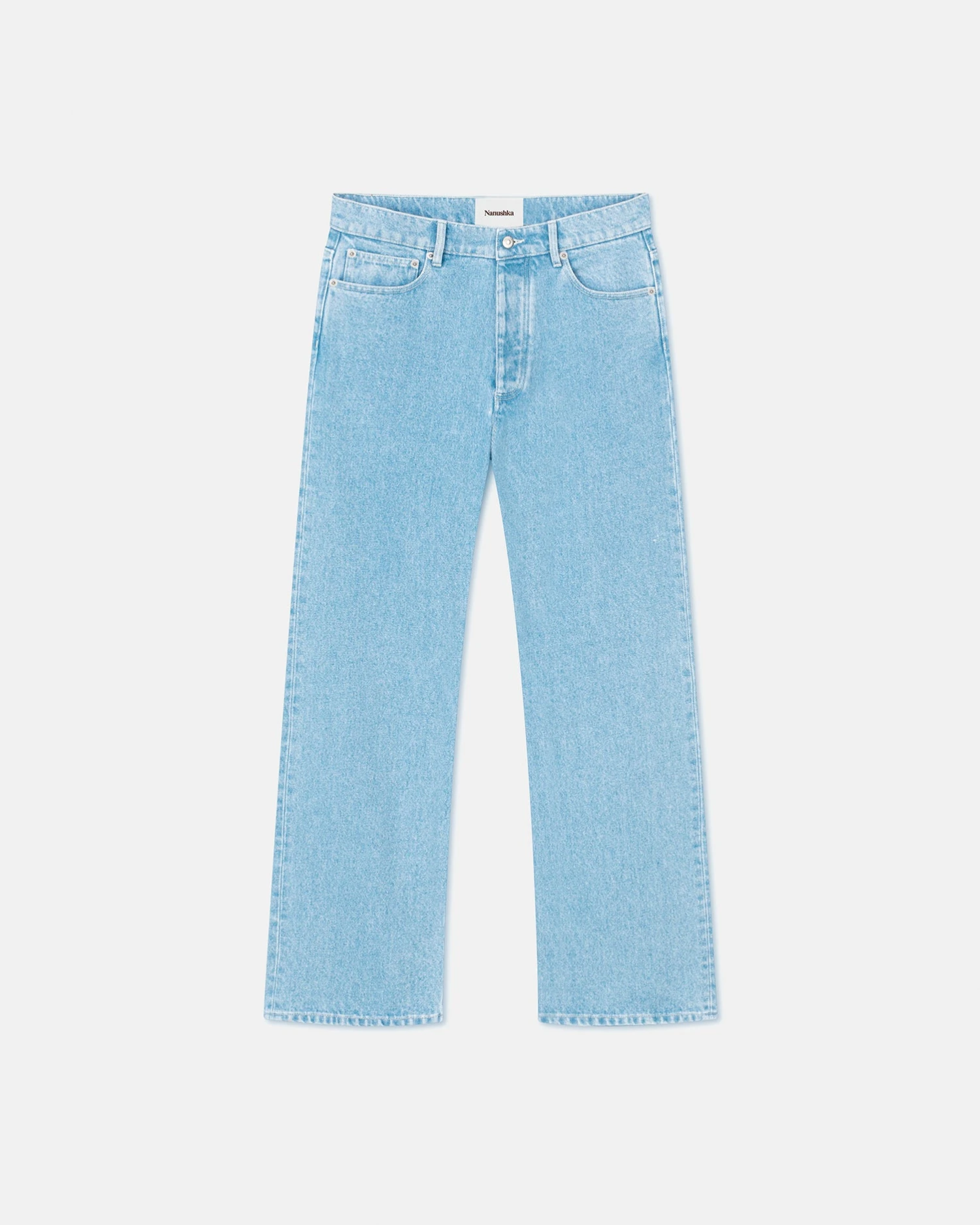 We champion precise cuts and responsible materials in our denim collection. These straight-leg jeans are made from our eco denim in a light wash and finished with a classic five-pocket design, belt loops and an embroidered monogram.