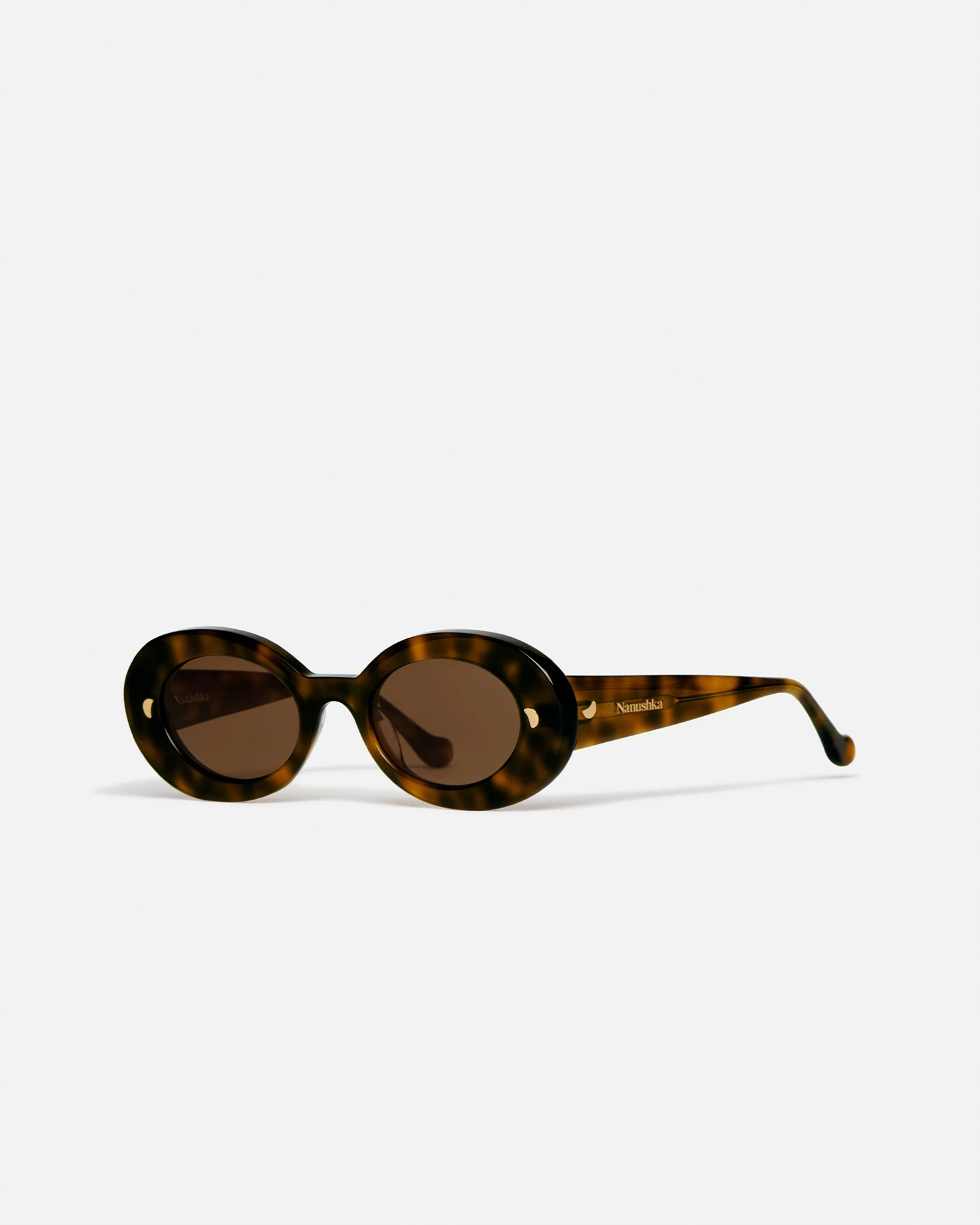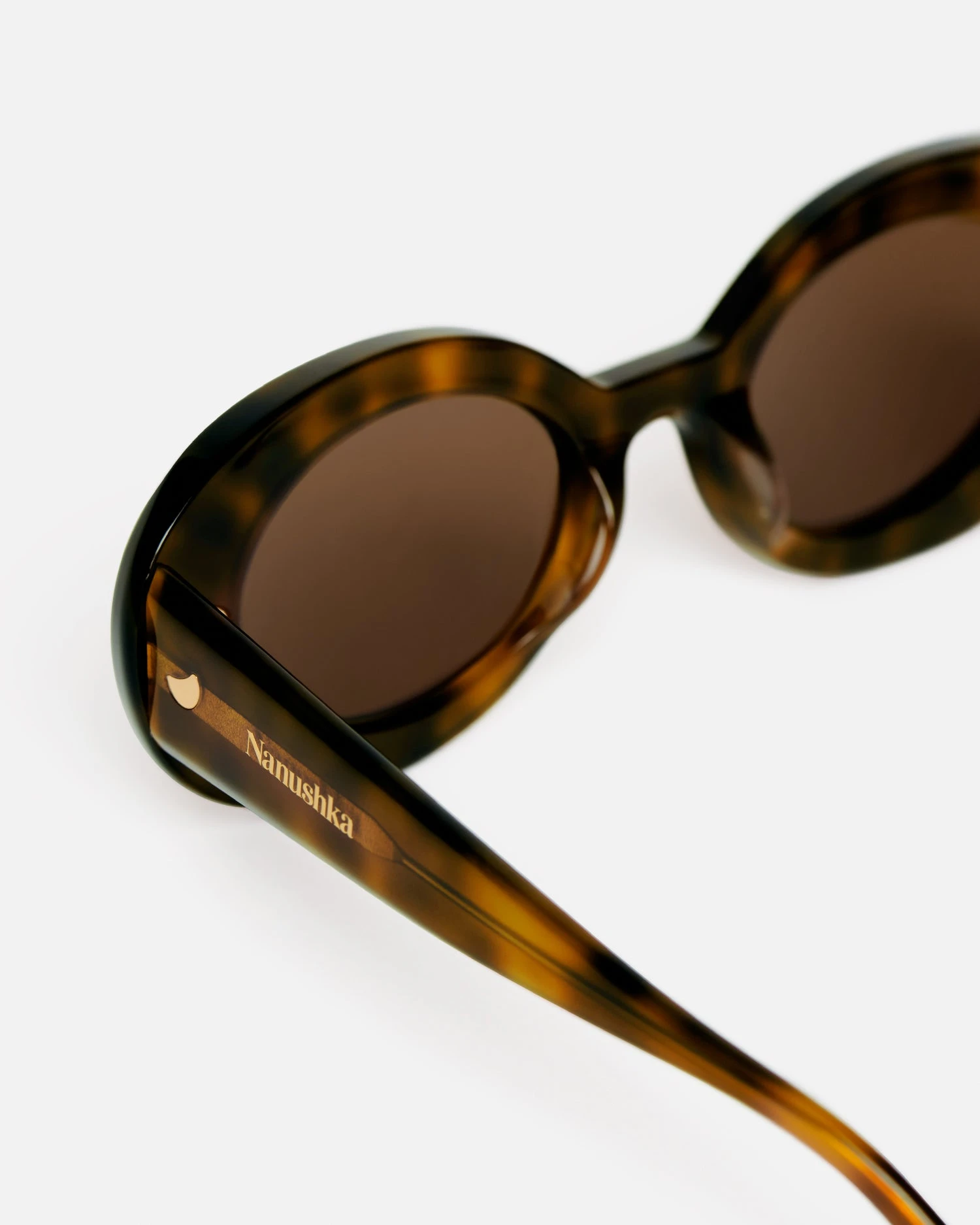 Nanushka Giva – Bio-Plastic Oval Sunglasses – Dark Amber