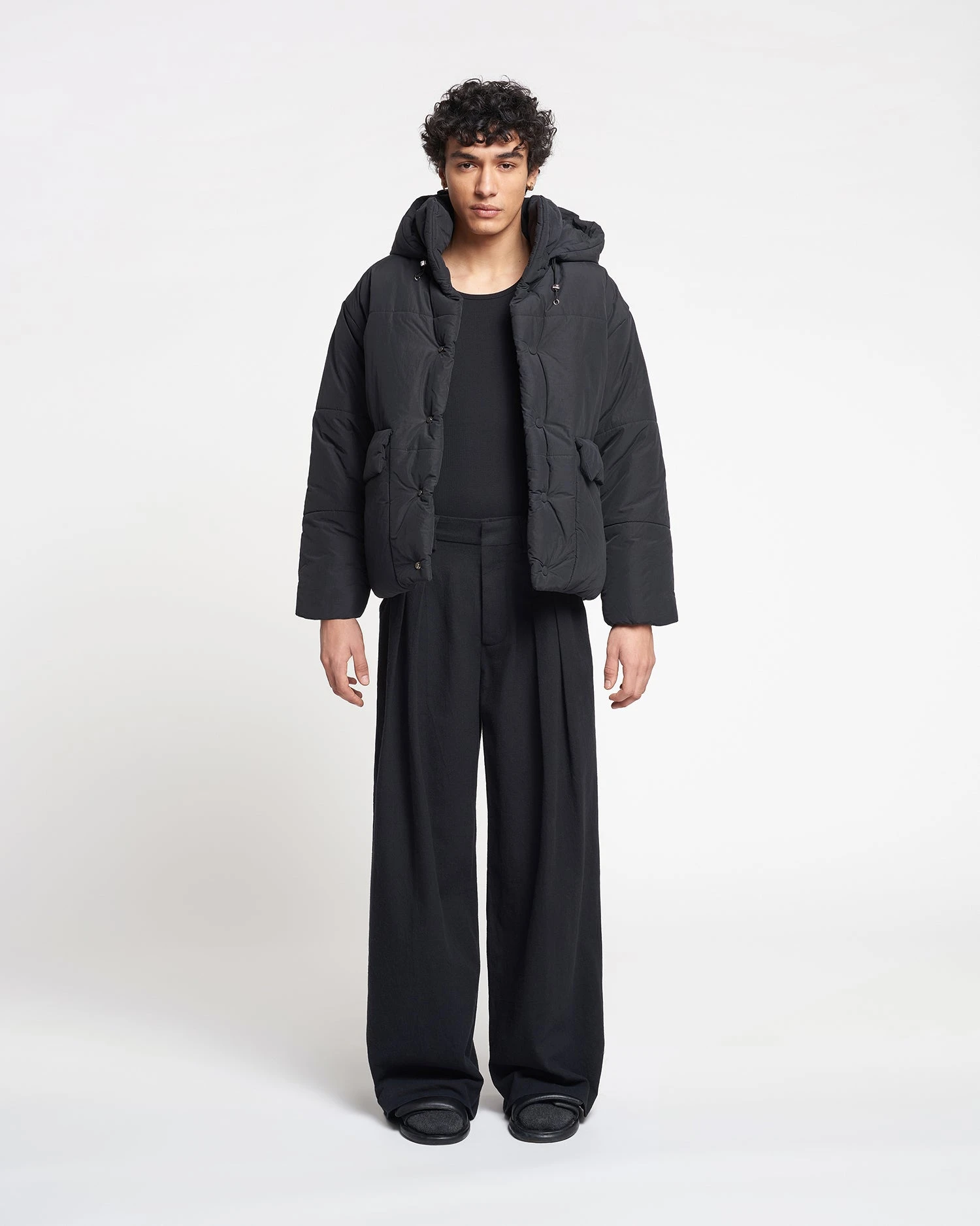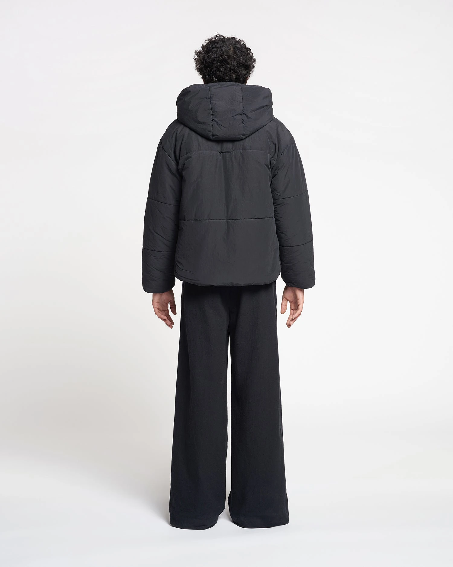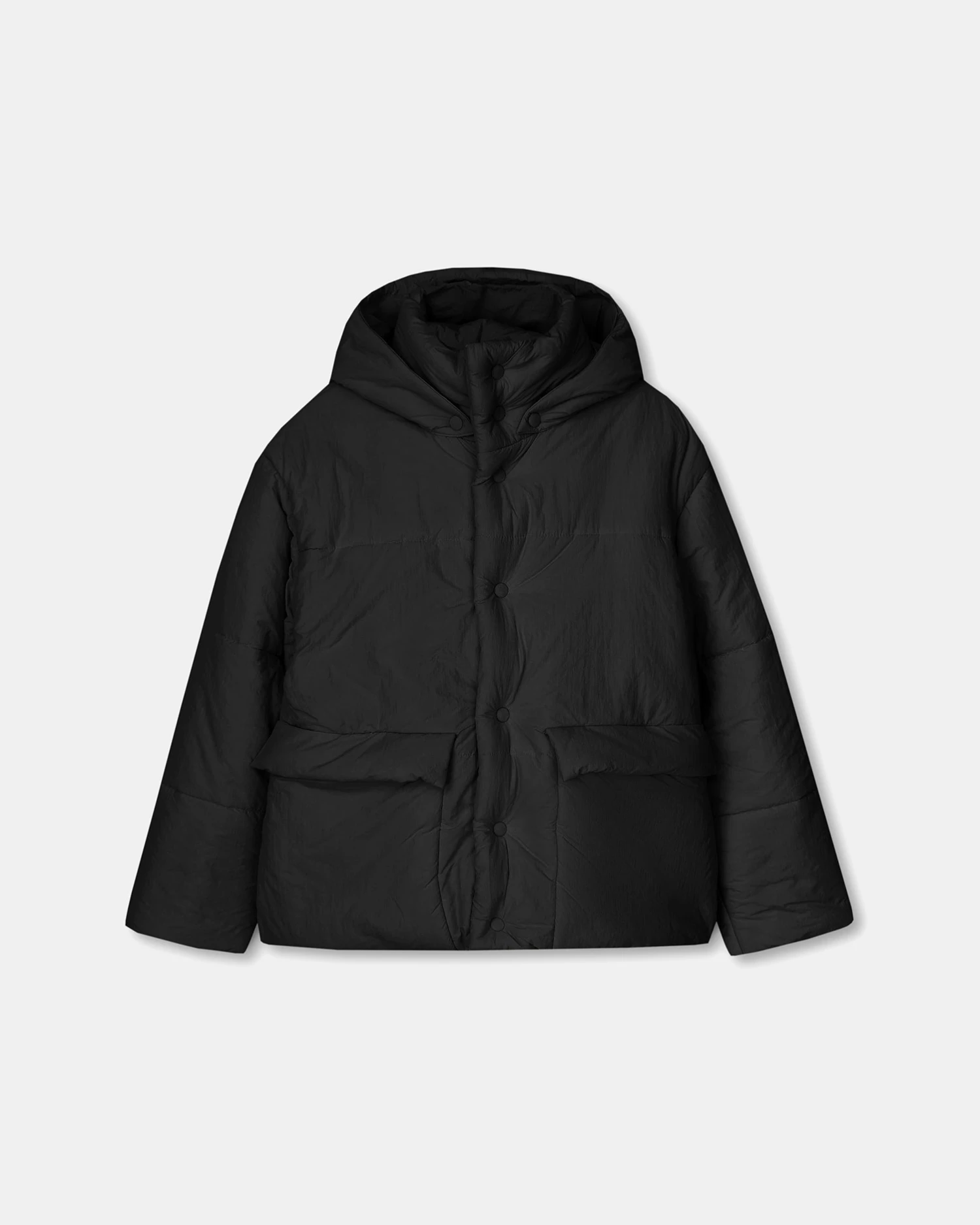 Nanushka Hide Hood – Tech Poplin Hooded Puffer Jacket – Black