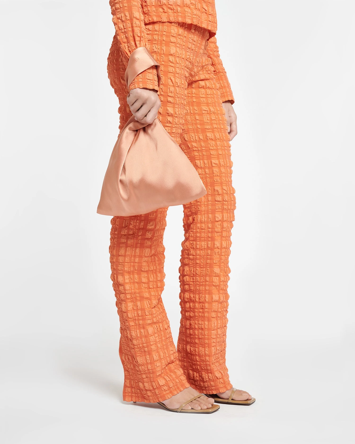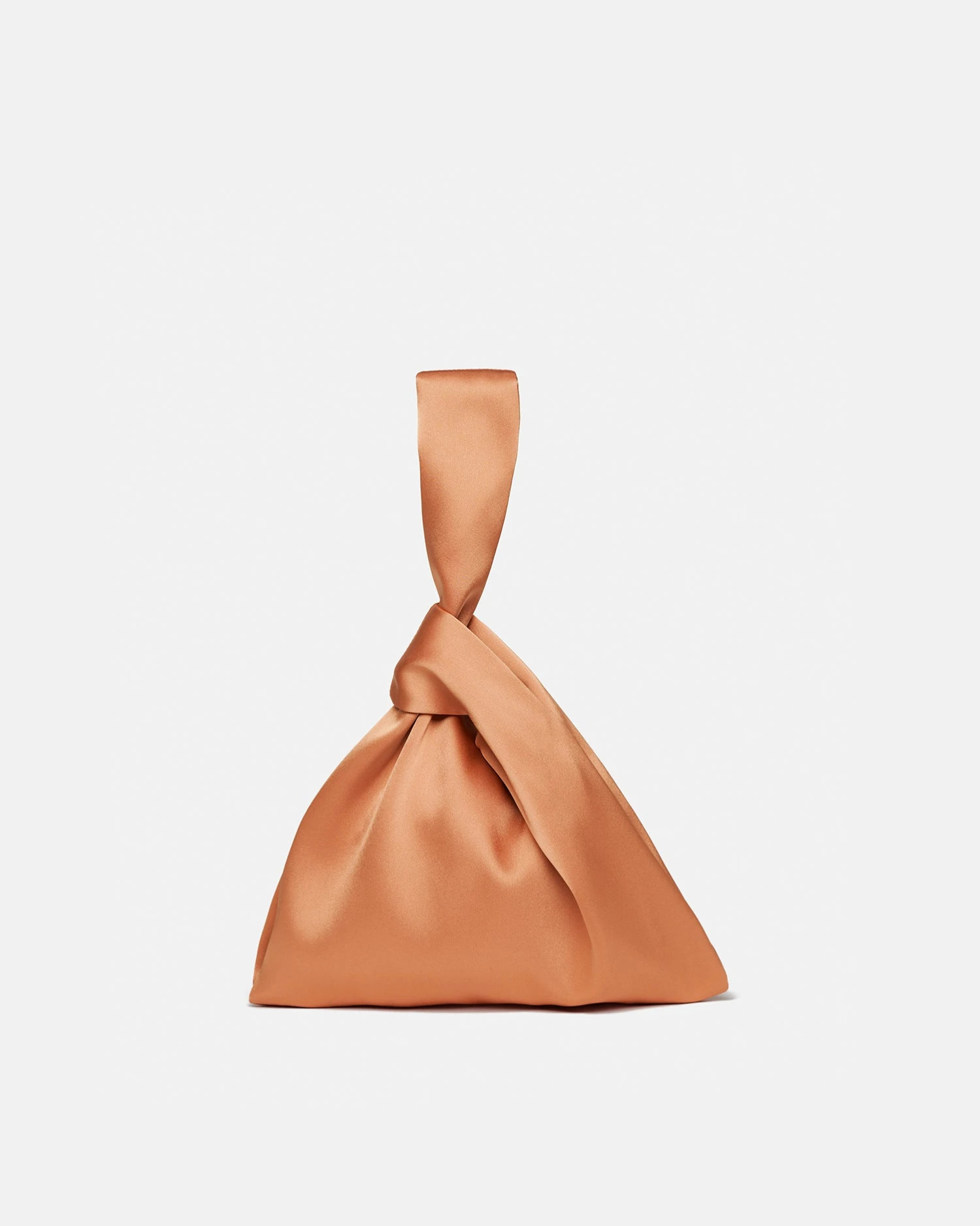 The Jen clutch is crafted from signature slip satin for a slouchy triangular shape that still feels elegant. In a vivid apricot hue, it is perfectly sized to hold your phone, card holder and keys. Slip your wrist through the looped strap.
