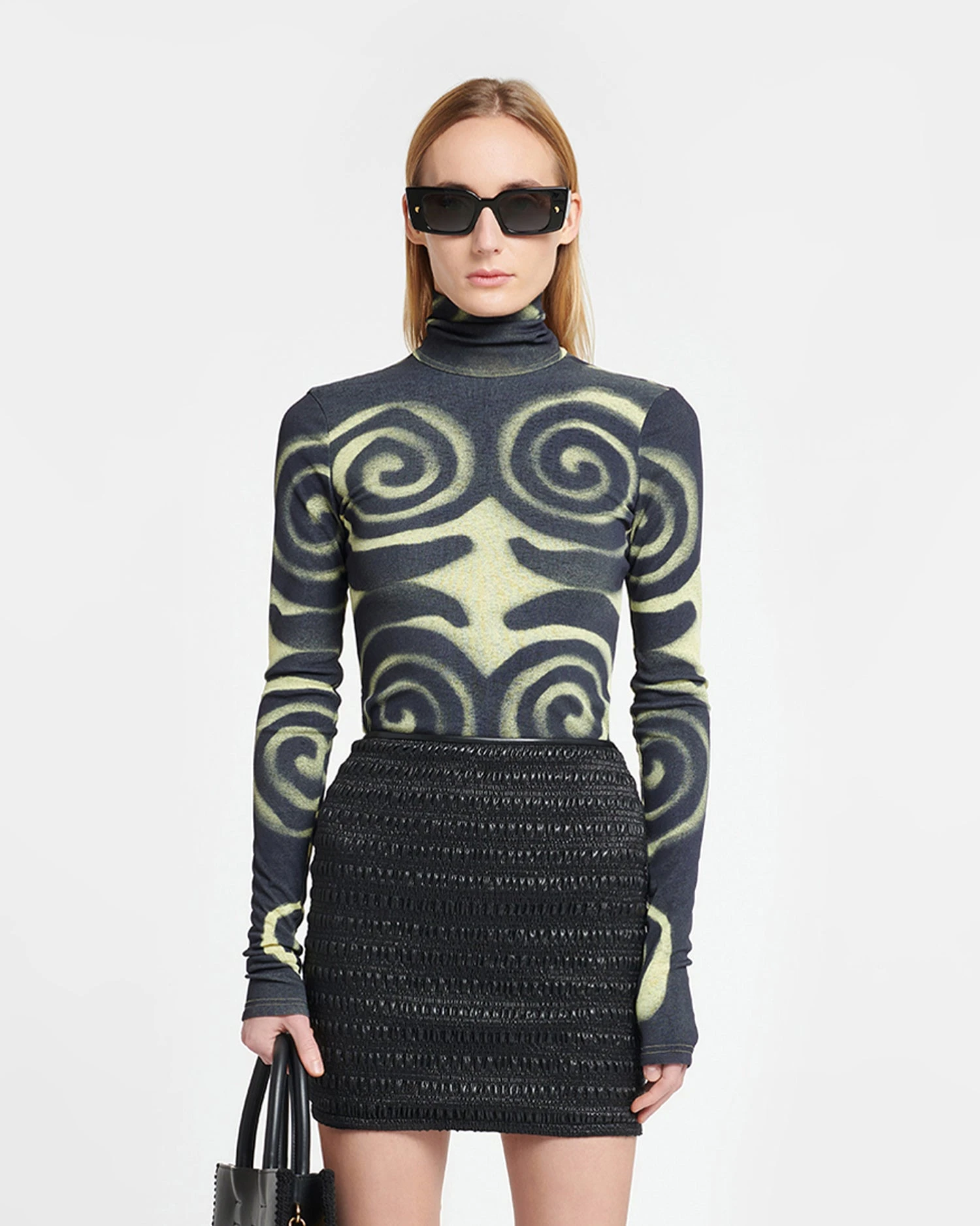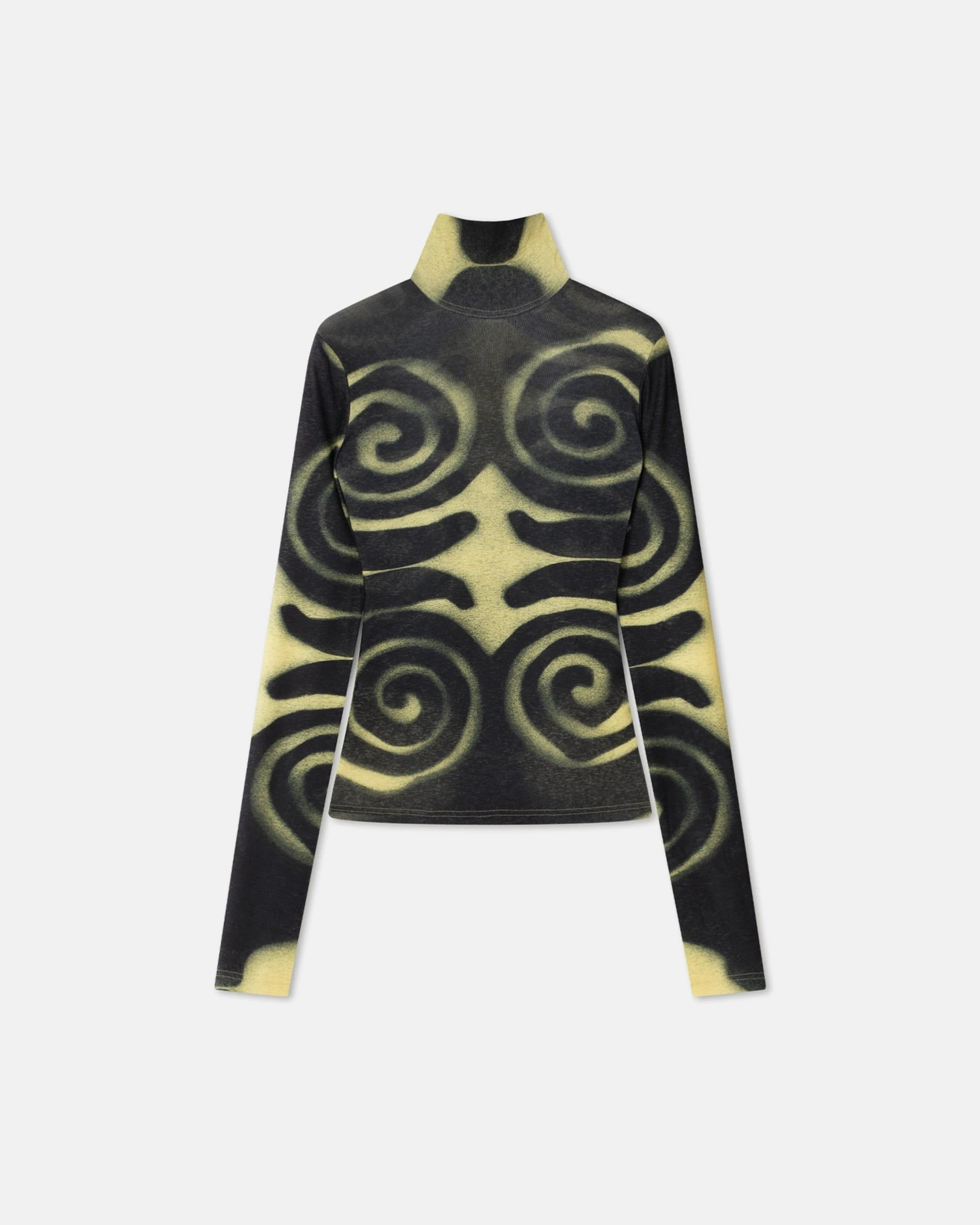 The Josa top is constructed from soft mesh jersey for a figure-skimming silhouette. It is decorated with a digitally-printed spray spiral motif that symbolises our circular approach to design. The high neck and open back add to the sense of informal beauty.