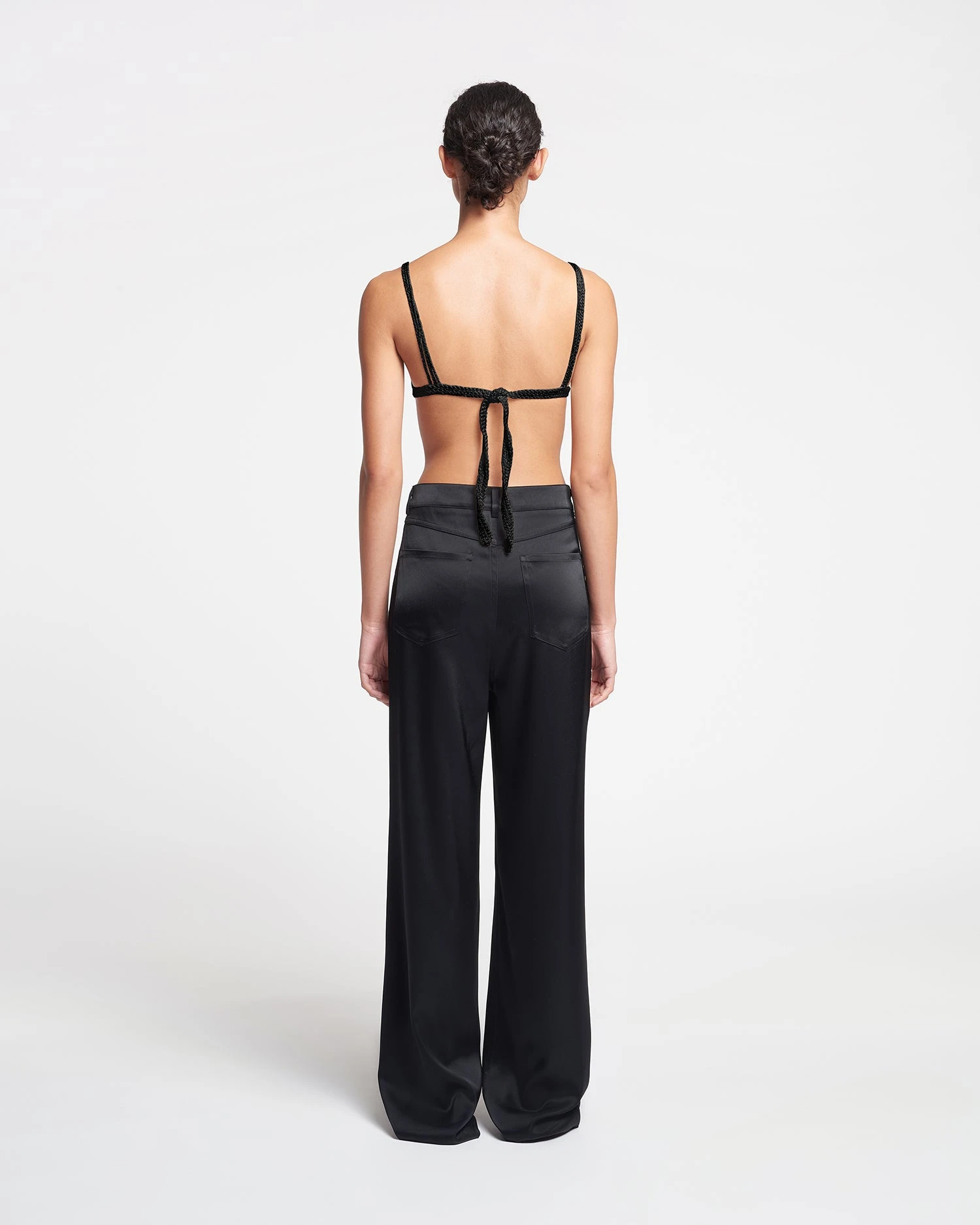An elevation of classic ‘90s styles, the Josine pants are designed for a slouchy fit. Sitting low on the hips with floor-pooling hems, they are crafted from slip satin for an elegant finish.