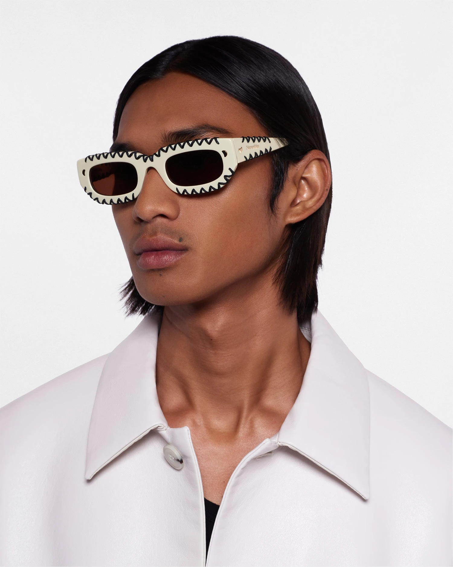 Nanushka Kadee Crochet – Crocheted D-Frame Sunglasses – Cream