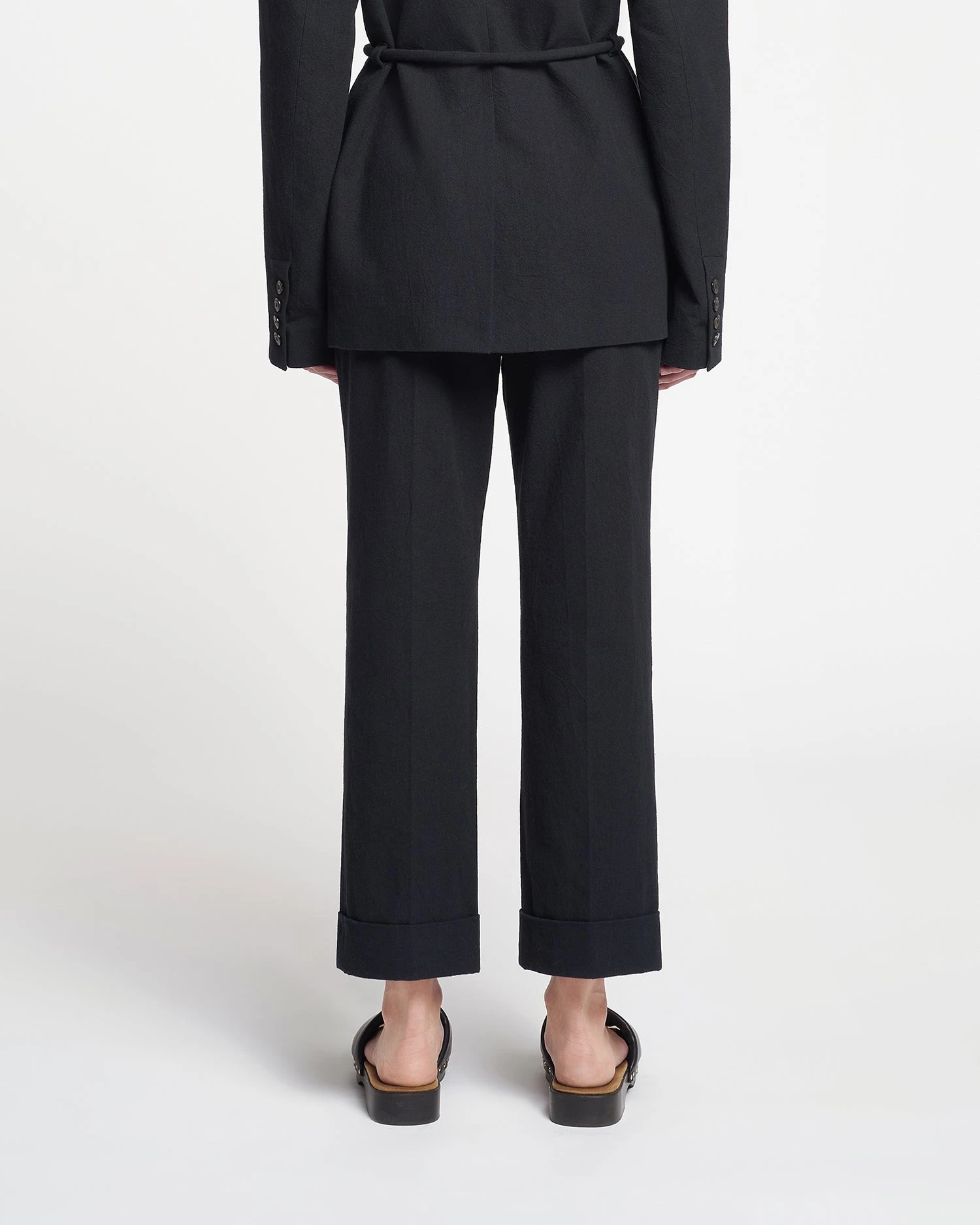 The Katrine pants transcend seasons. Tailored from black washed canvas, they have a straight-leg silhouette with turn-up cuffs for easy elegance.