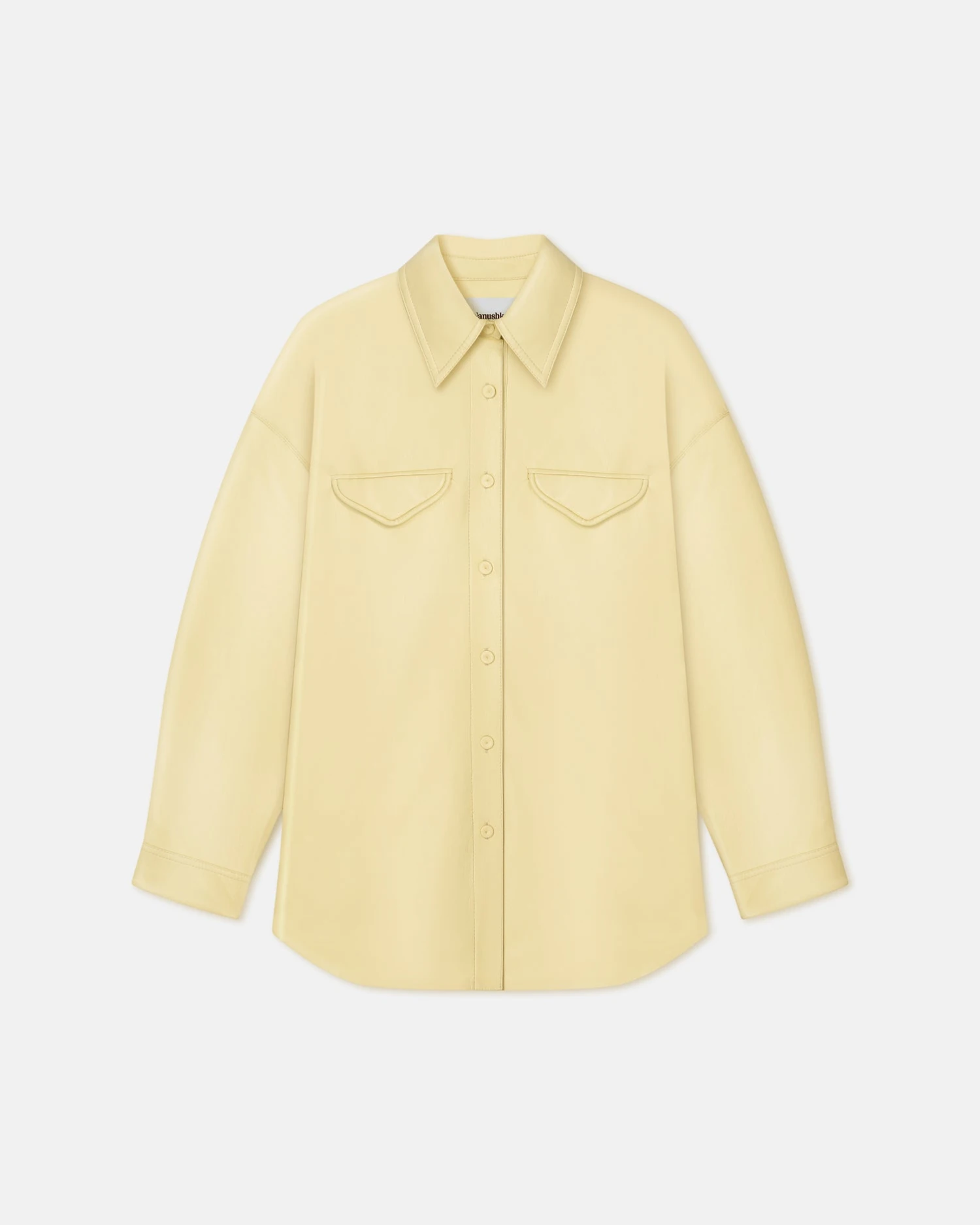 New heritage is a core design theme, as demonstrated by this season’s western-style detailing. The Kaysa shirt is defined by the classic flap pockets that are padded for contemporary flair. It is made from our smooth Okobor™ alt-leather for a relaxed fit.