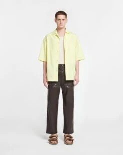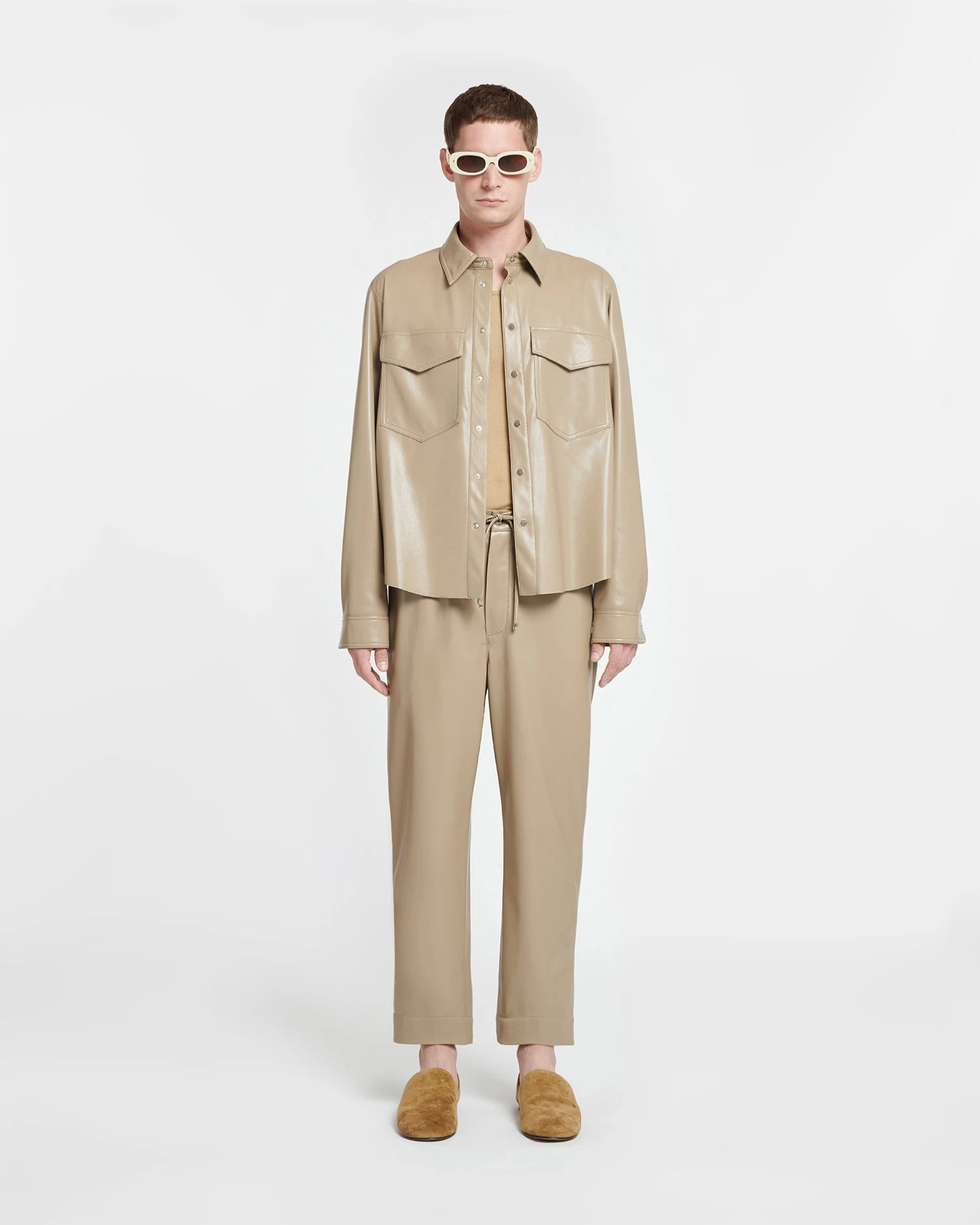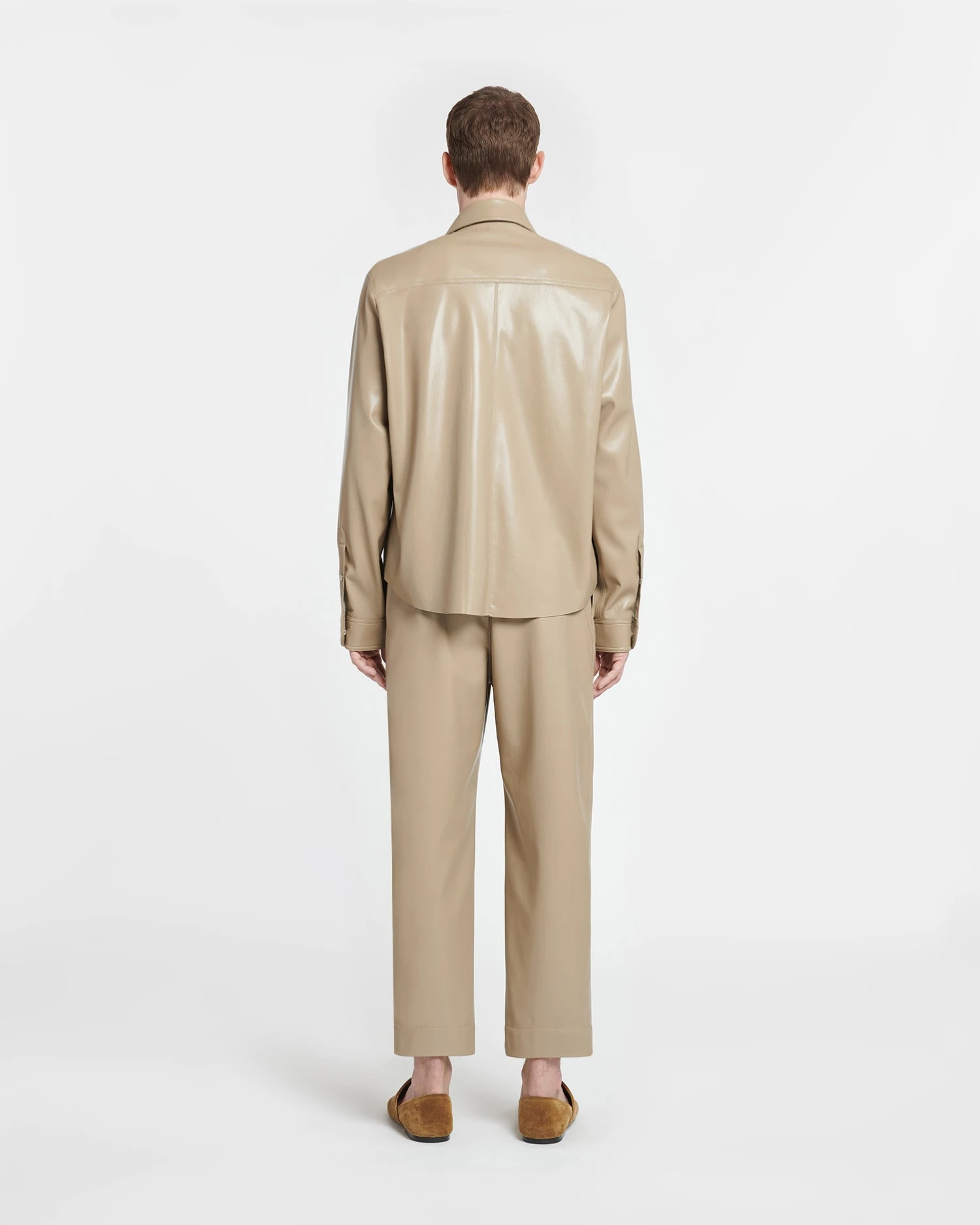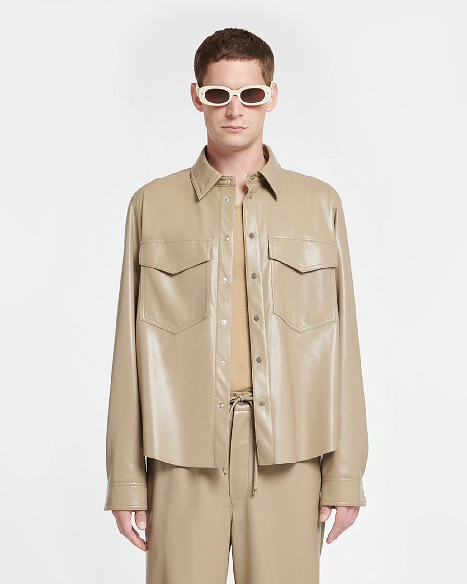 The Lenn shirt is expertly tailored from our signature Okobor™ alt-leather and detailed with western-inspired chest pockets. In a neutral ashy-taupe tone, it has a loose fit and curved hem.