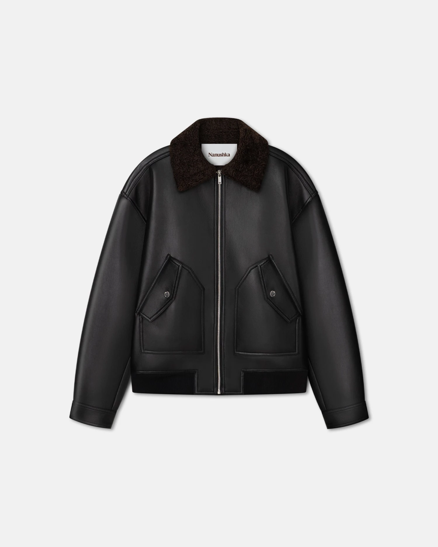 Inspired by classic aviation styles, the Lude jacket is made from supple shearling that promises to soften with wear over time. It is detailed with fuzzy brown trims for a cosy feel.