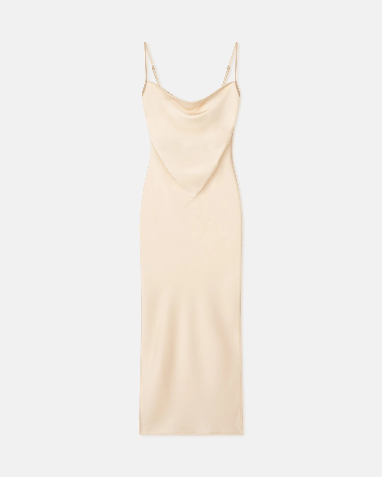 Made from signature slip satin, the cowl neckline and delicate spaghetti straps are tied together to the perfect ankle length, making the Macia dress a Nanushka classic.