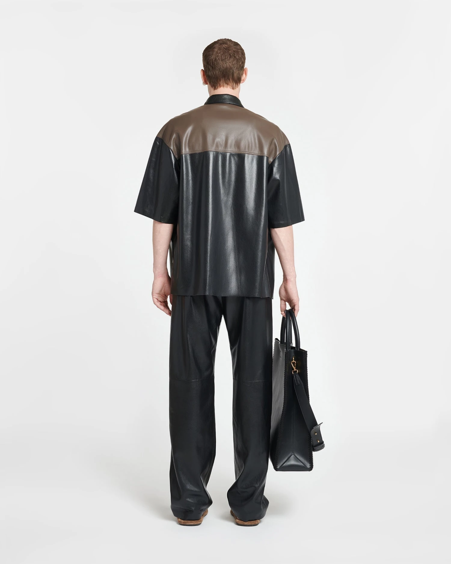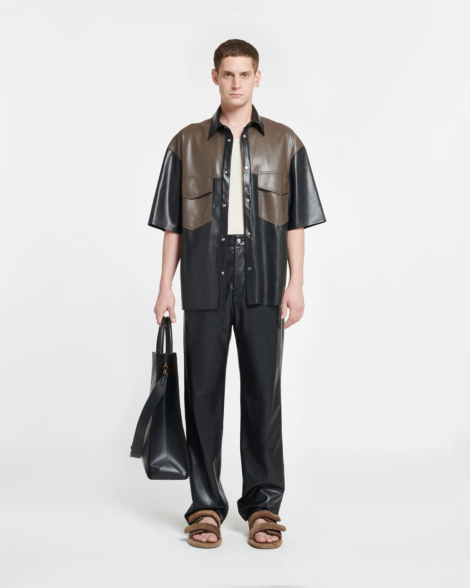 The Mance shirt is made from our signature Okobor™ alt-leather in a western-inspired patchwork of shiitake and black. It is designed for a loose fit and is finished with chest pockets.