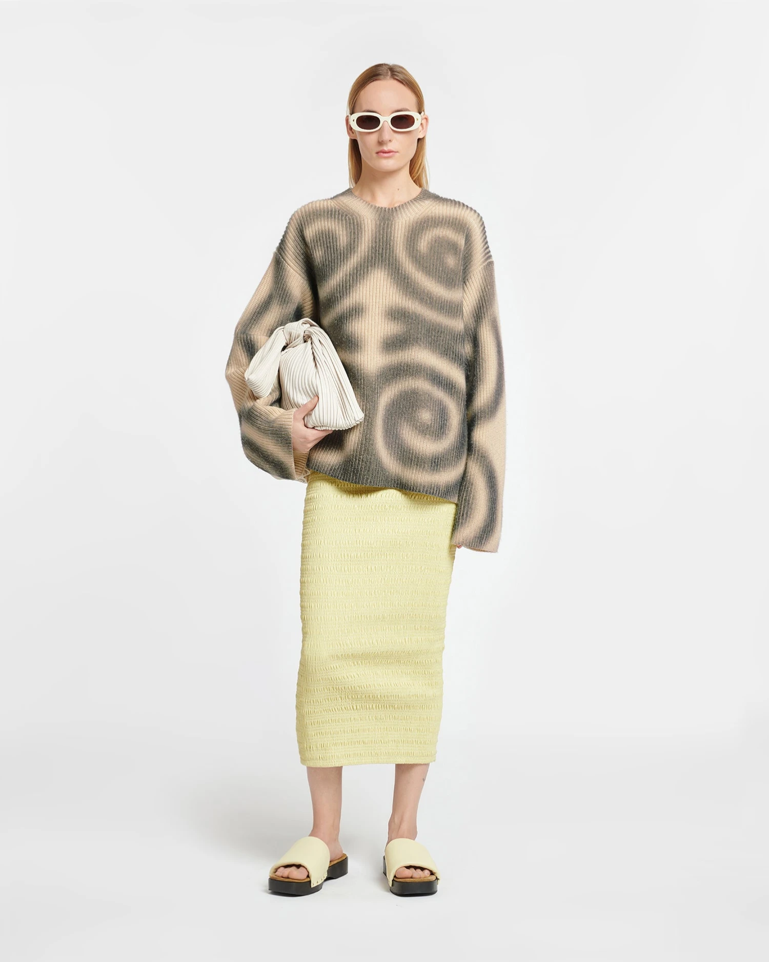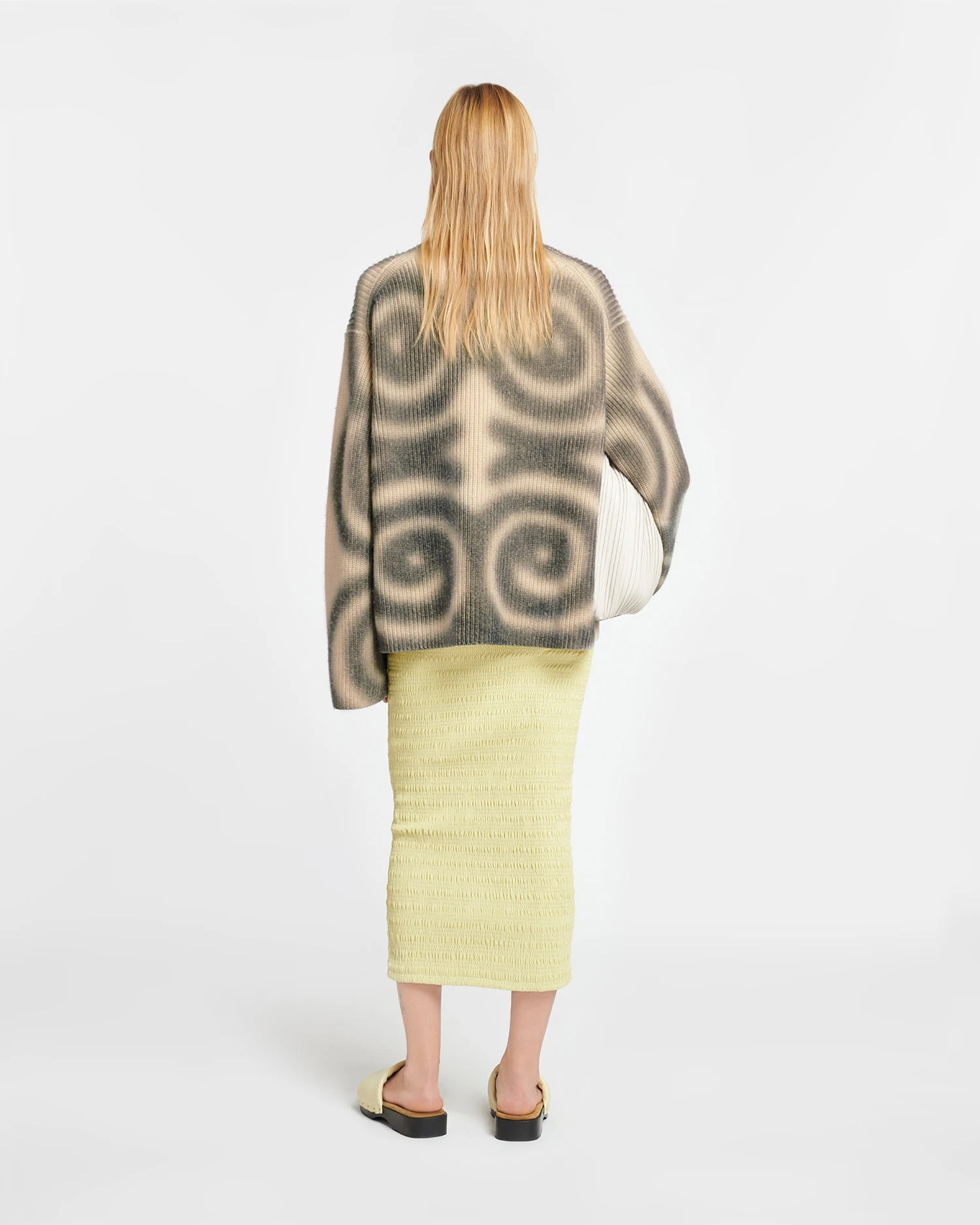 A wardrobe cornerstone, the Maura sweater is knitted from a cashmere blend that feels blanket-soft. It has dropped shoulders to emphasize the relaxed fit. The digitally printed spray spiral motif symbolises our circular approach to design.