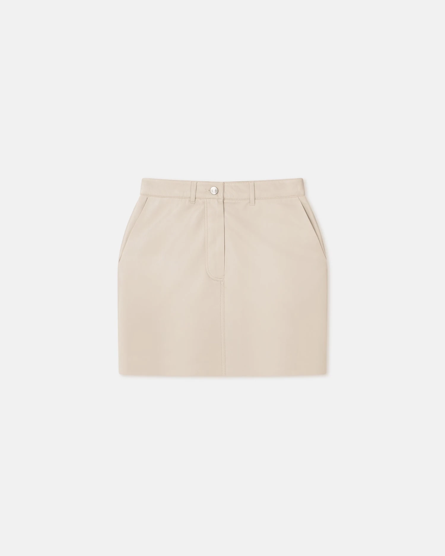 The Miray skirt is crafted from our signature OKOBOR™ alt-leather in a timeless creme tone. It has the appearance of a classic denim style – with belt loops and a five-pocket – and sits high on the waist with a particularly short hem.