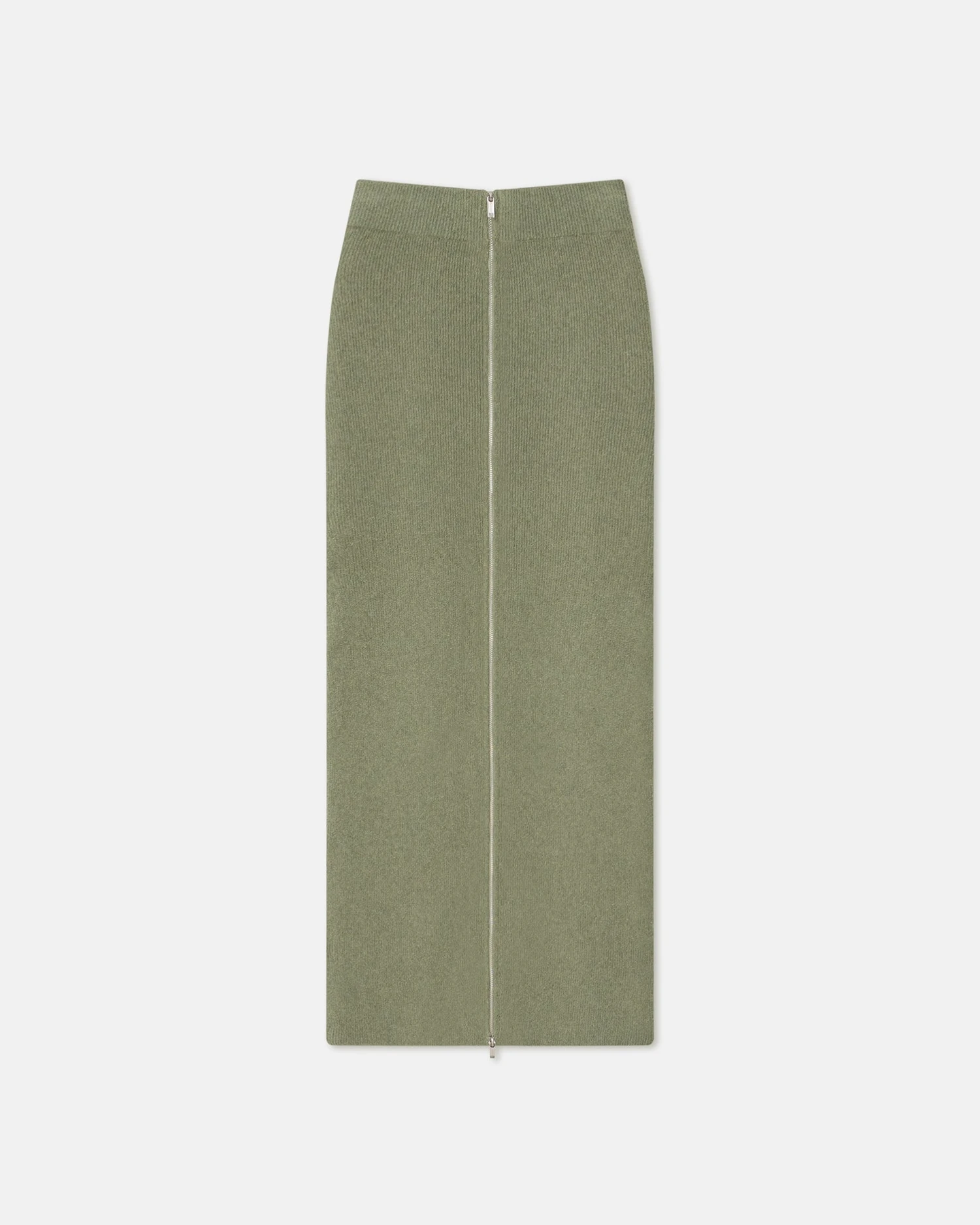 The Nima skirt is knitted from terry for a soft, lightweight feel. In an elegant faded-sage tone, it has a front zip that can be opened. The high-waist silhouette pairs with the cropped cut of the coordinating Marnin top.