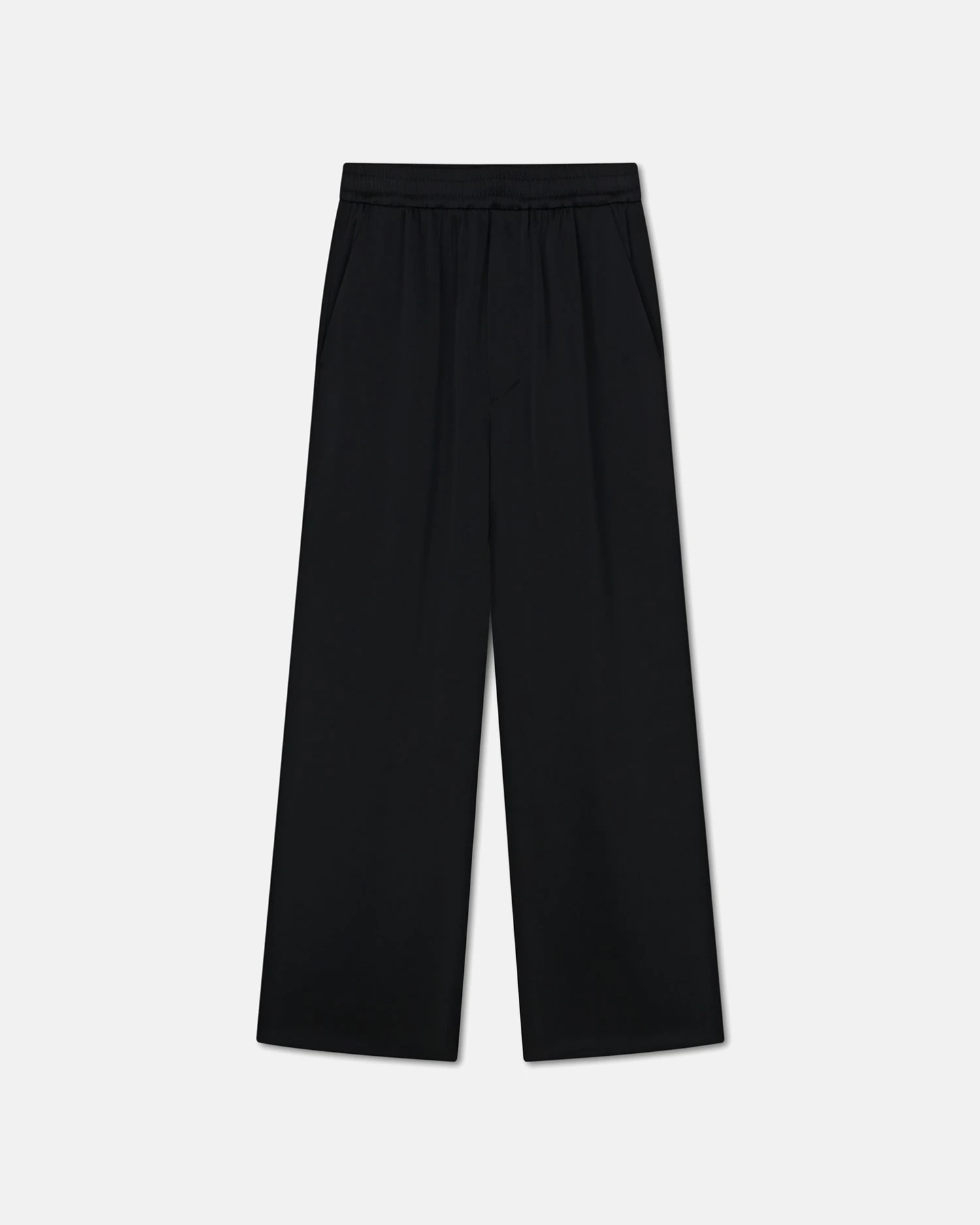 The Odessa pants are crafted from signature slip satin in a classic black tone. Elegantly relaxed, they sit at the waist with an elasticated waistband before falling beautifully into subtly kick-flared legs.