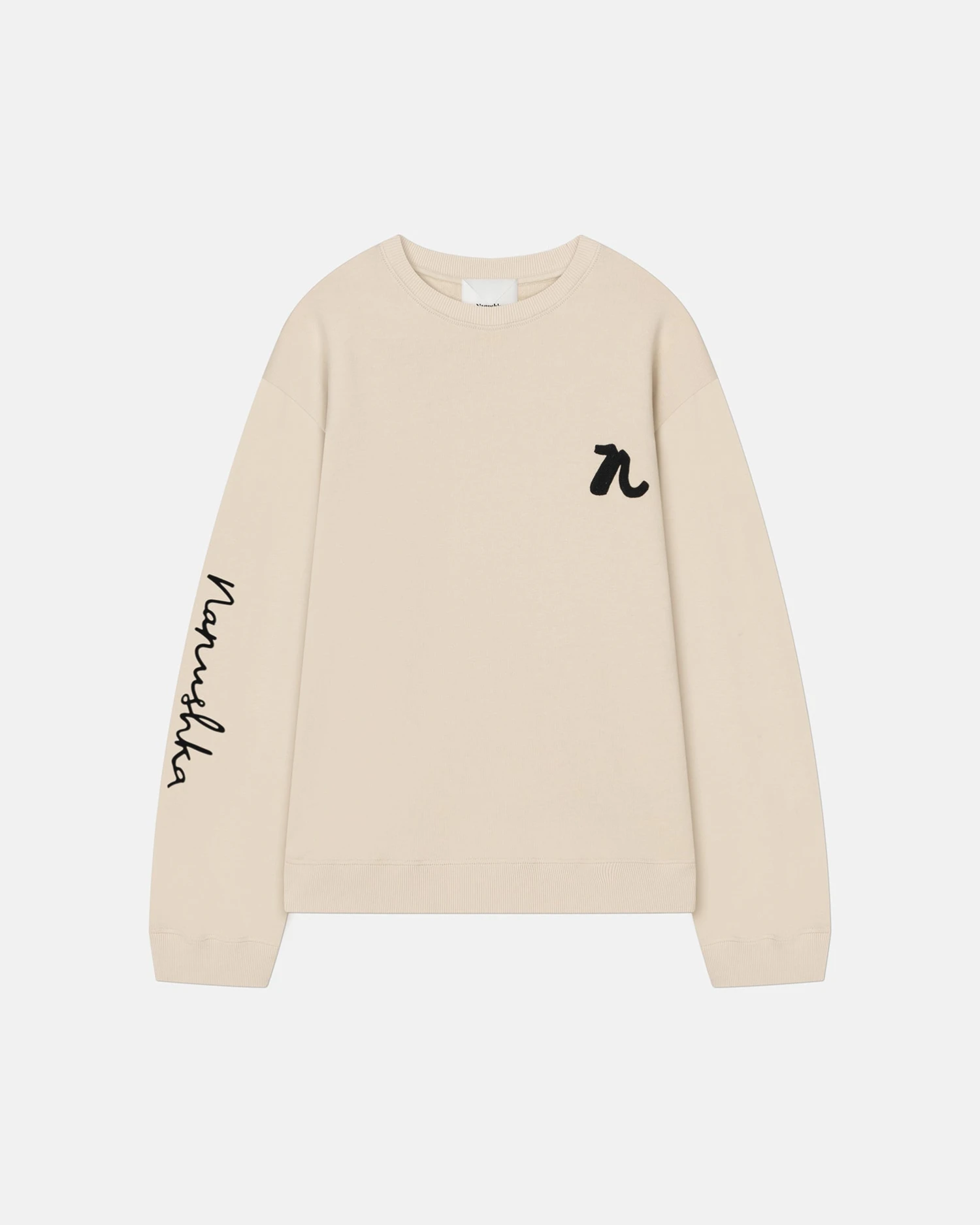 Nanushka Remy – Fleece Sweatshirt – Creme-Black Dragon Embroidery