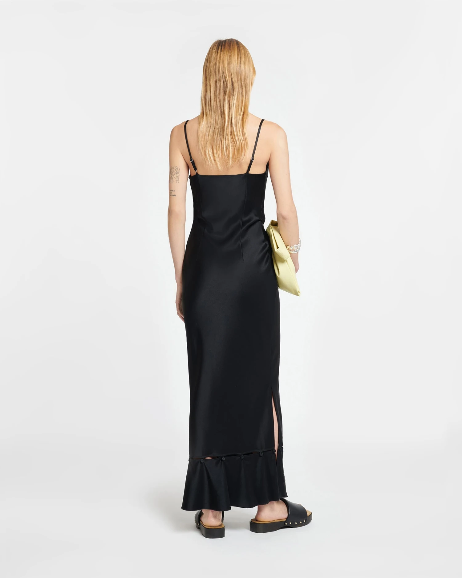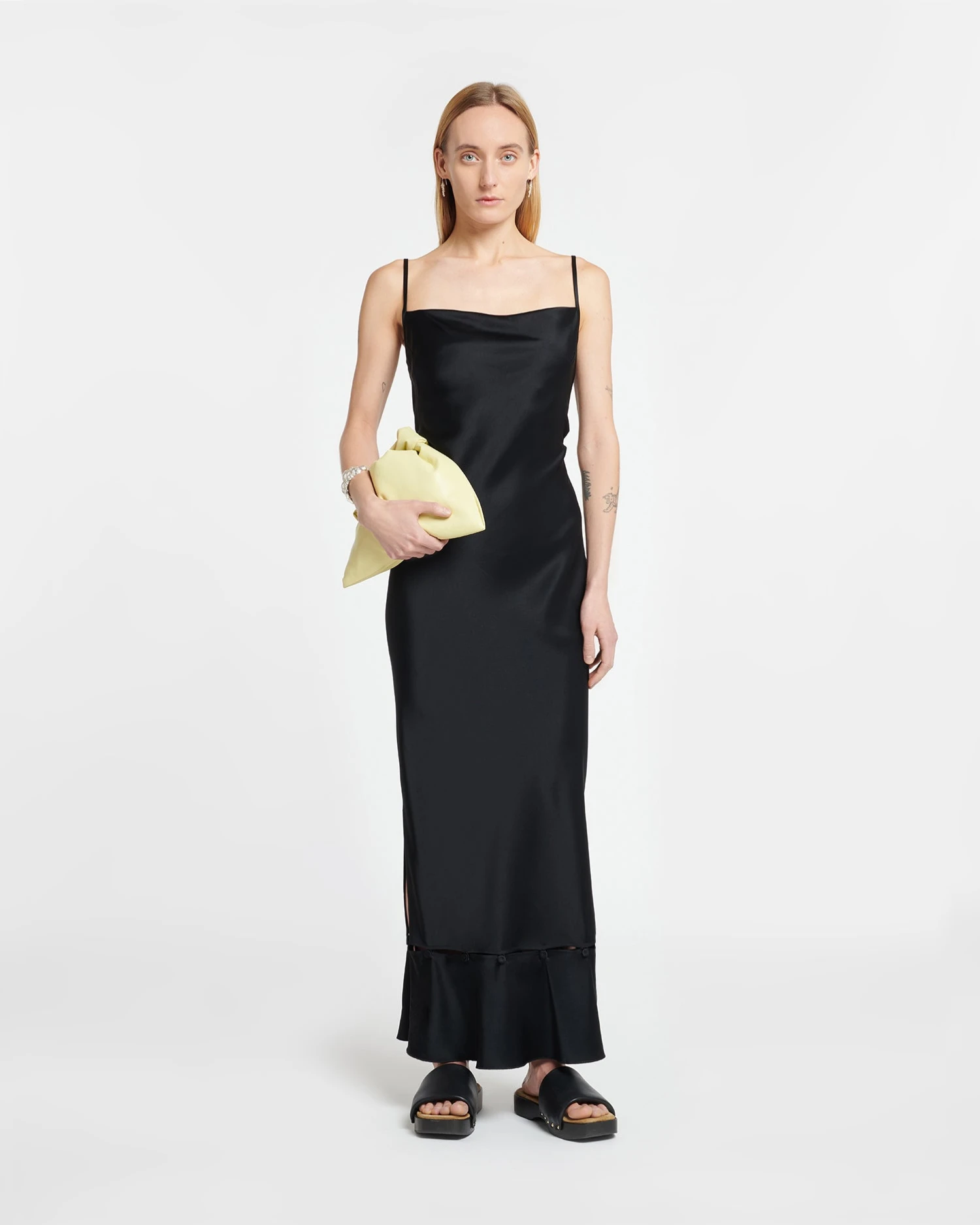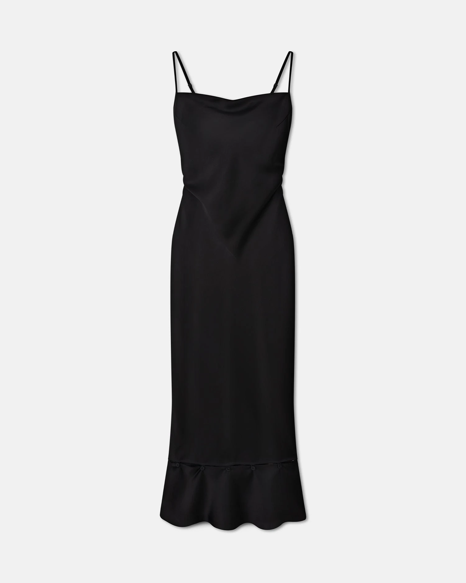 The Renny dress encapsulates our design ethos of decorative modularity, with a peplum hem that can be unbuttoned so you can switch from a voluminous maxi to a more streamlined midi-length silhouette. All other details are timeless ā from the lustrous slip satin construction to the thin spaghetti straps and subtle cowl neckline.
