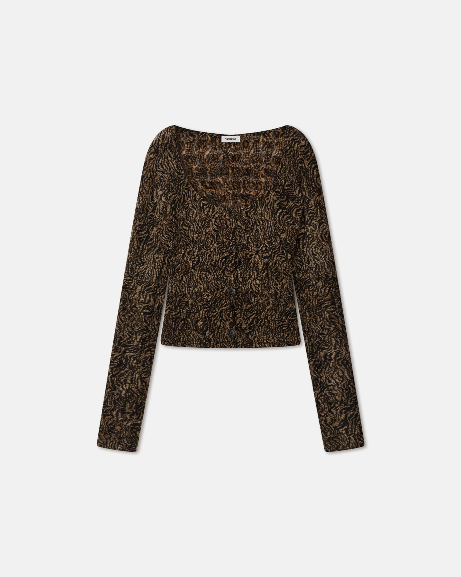 We continuously adapt styles long considered wardrobe cornerstones with shrunken silhouettes and textile exploration. Cut for a cropped silhouette, the Rosine cardigan is made from deadstock chiffon with a smocked finish that gives the zebra print a distorted appearance.