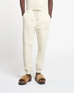 The Shay sweatpants are made from a blend of recycled cotton and organic cotton, and finished with a drawstring waist and elasticated cuffs. An embroidered logo can be found at the back patch pocket.