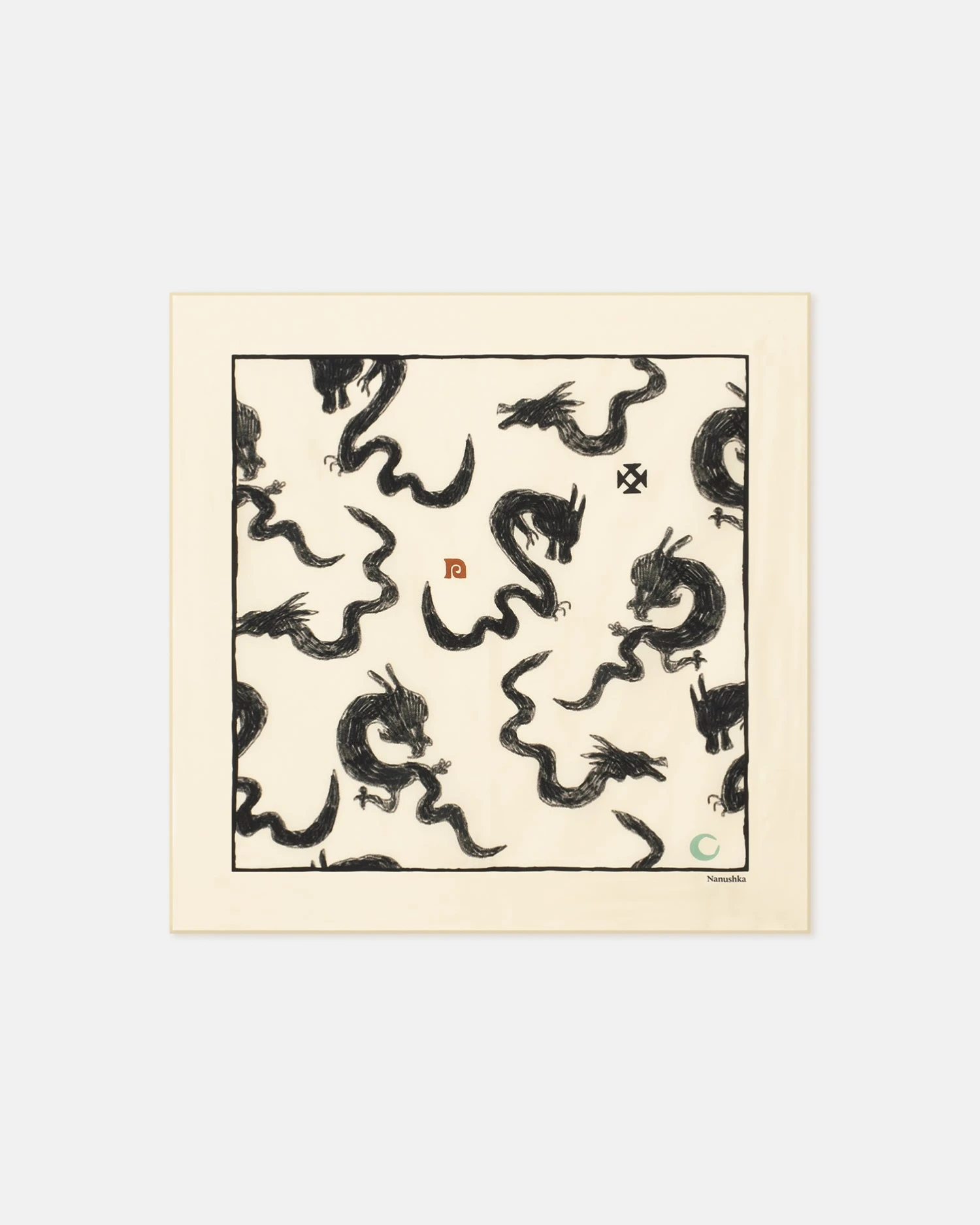 The Shoul scarf is decorated with our dragon motif, created in celebration of the Lunar New Year. Made from lustrous silk, it can be styled as a headscarf or looped around the handle of a tote.