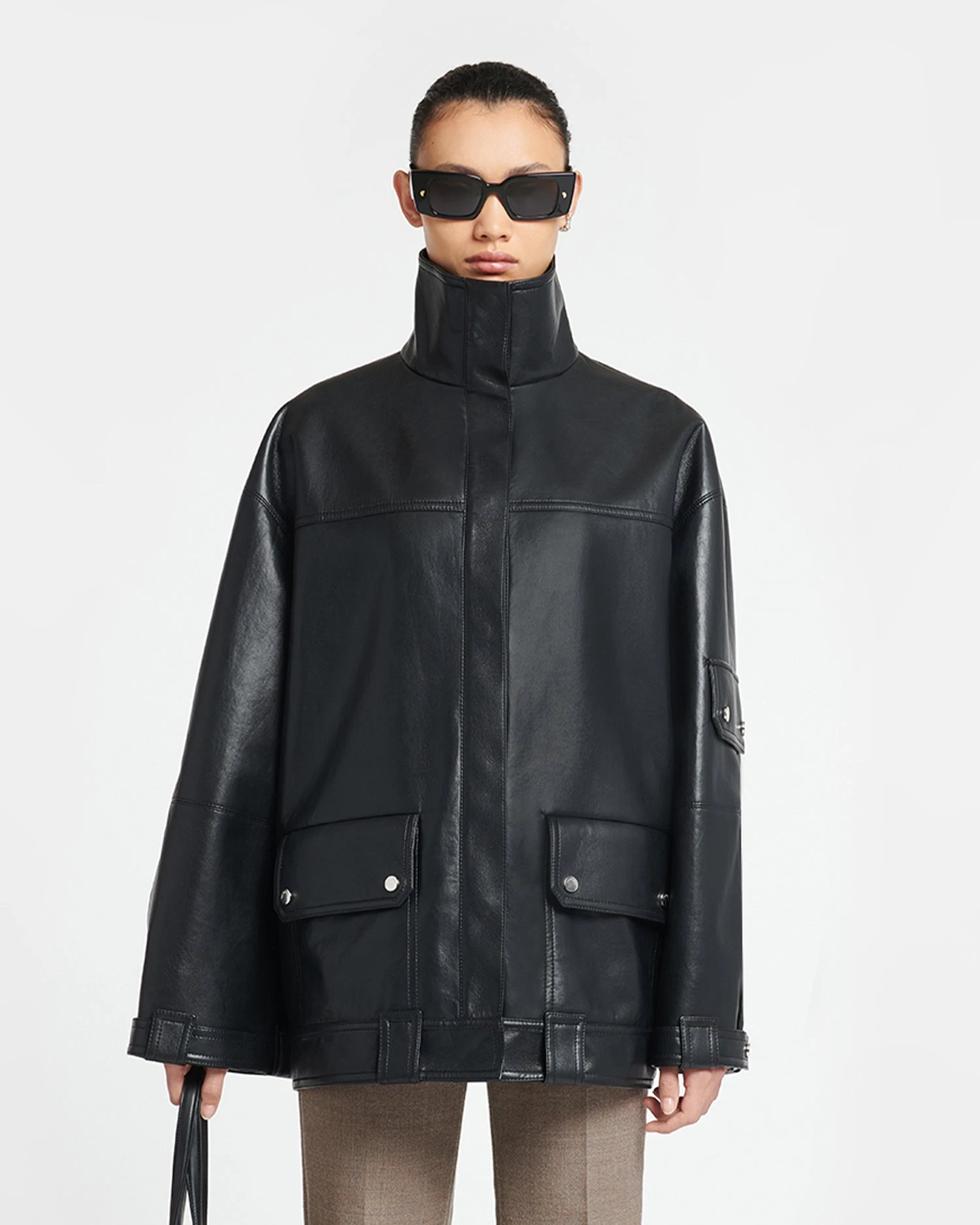 The Silva jacket demonstrates our exploration of large, structural silhouettes that subvert expected proportions. Meticulously crafted from supple regenerated leather, it has dropped shoulder seams and a funnel neck to emphasise the oversized fit without overwhelming your frame. The front flap pockets are large enough to house your phone and keys.