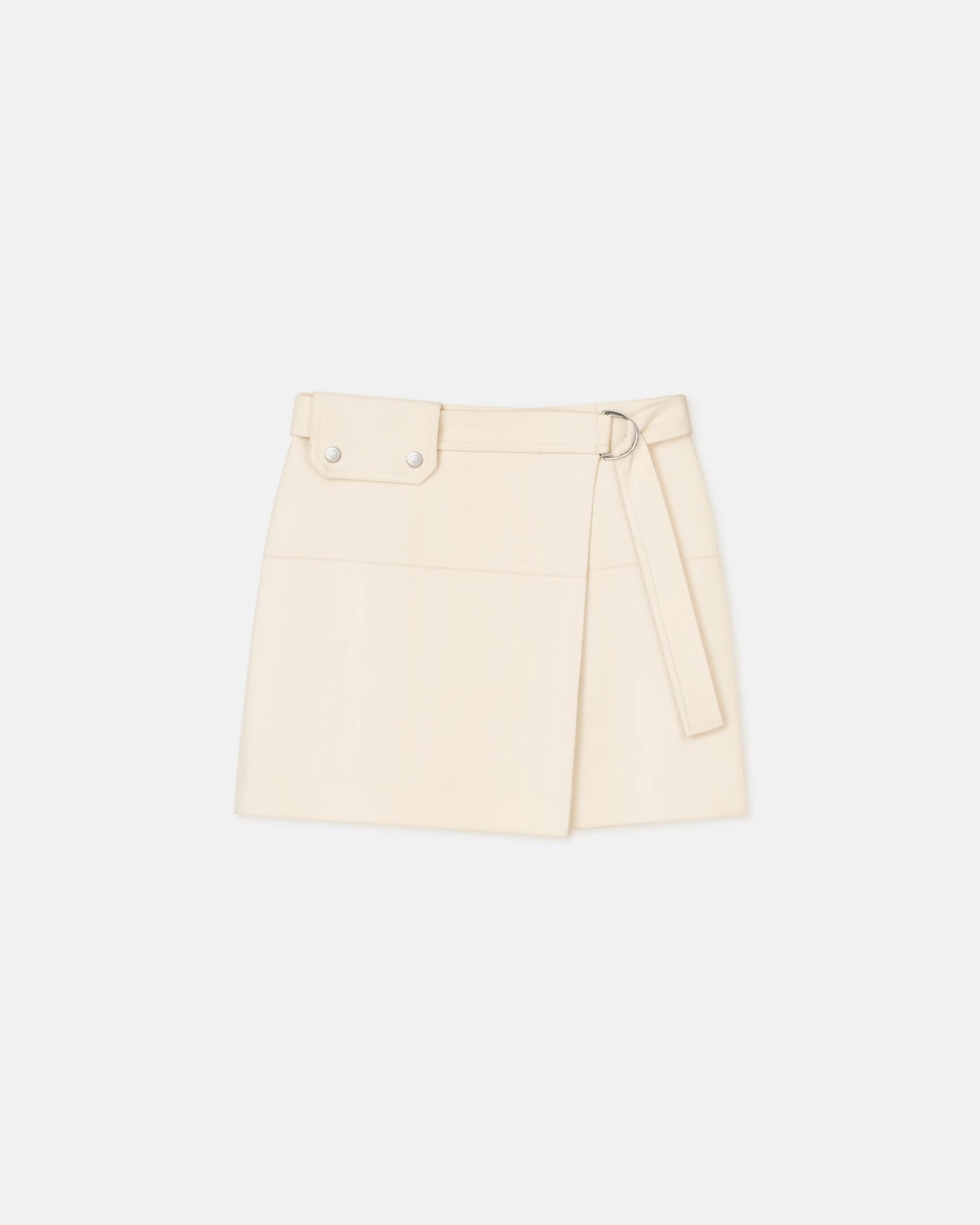 The Susan skirt is made from our structured twill in a versatile creme. It has a flattering wrap silhouette brought together by a D-ring fastening belt, as well as snap-fastening pouch – both inspired by traditional western details.