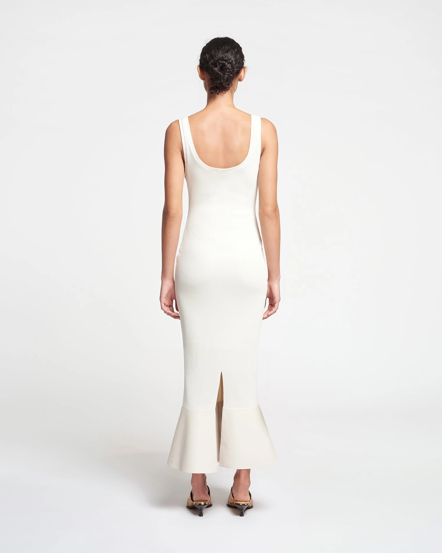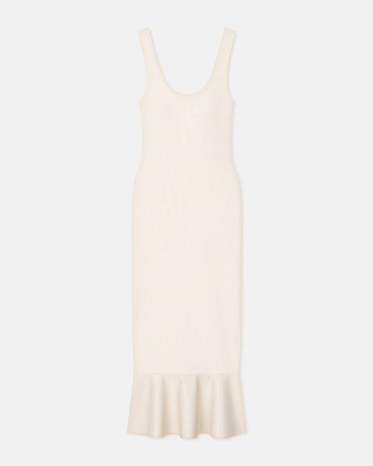 The Talulla dress combines contemporary detailing and material innovation. Itās made from soft jersey with a ribbed finish and scoop neck to accentuate the close fit. The tonal regenerated leather hem hangs beautifully.