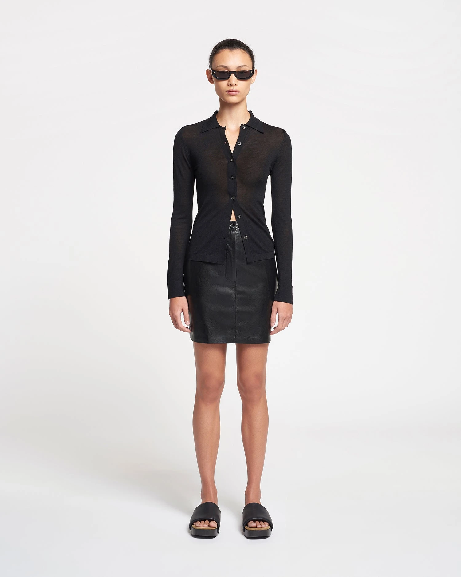 A modern take on the classic cardigan, Thalia features multiple buttons and is distinguished by its collar. Made from superfine merino, it also serves as a great layering piece.