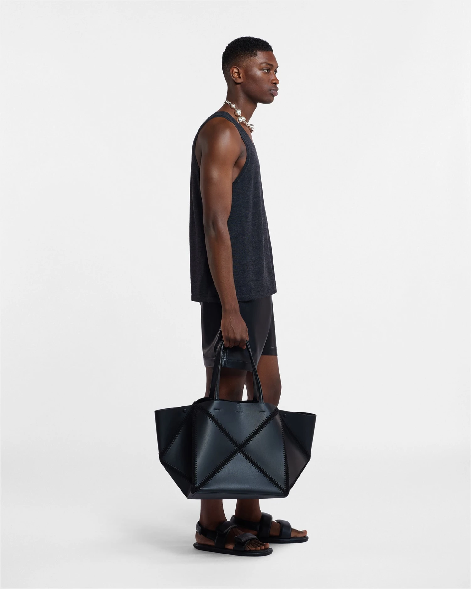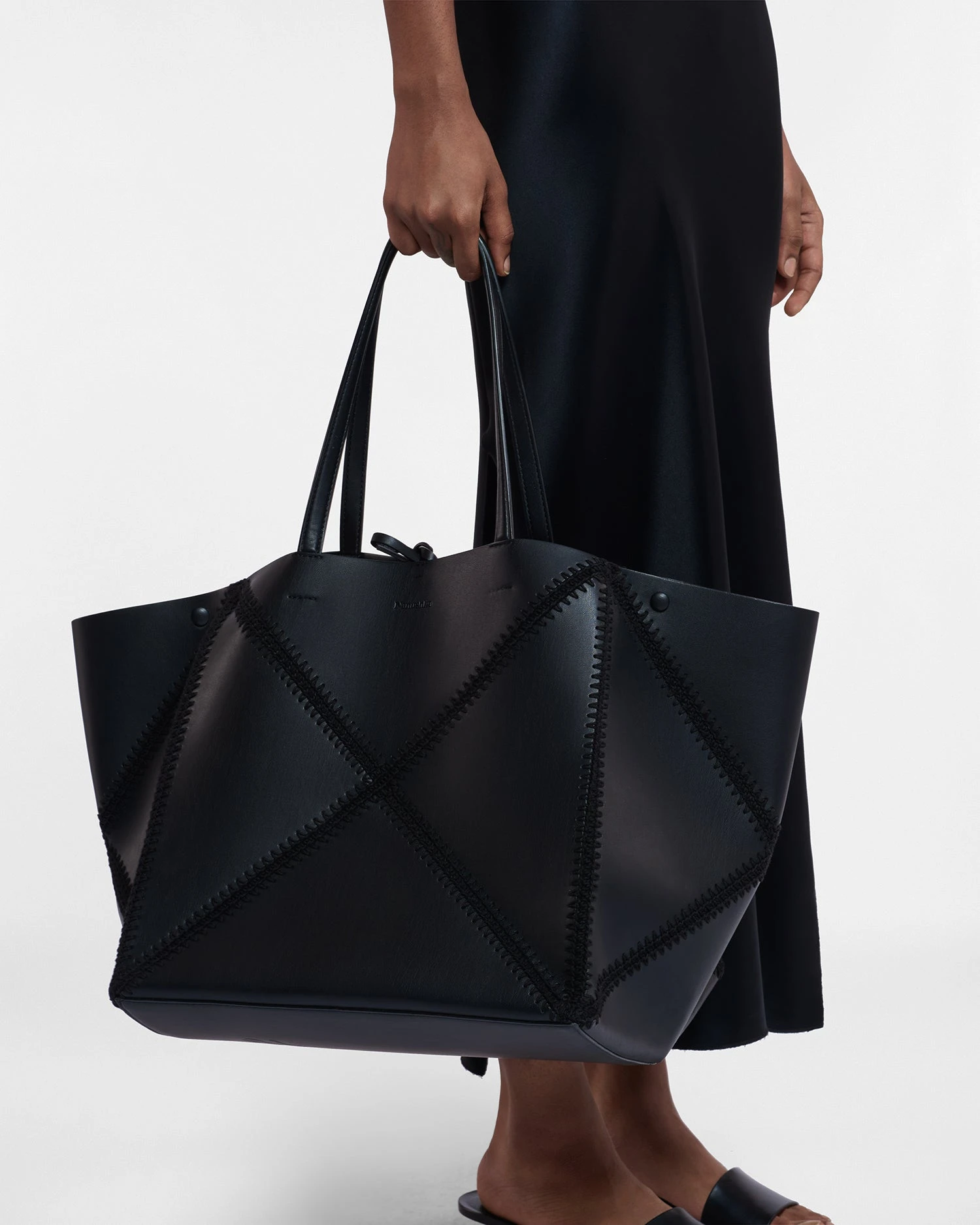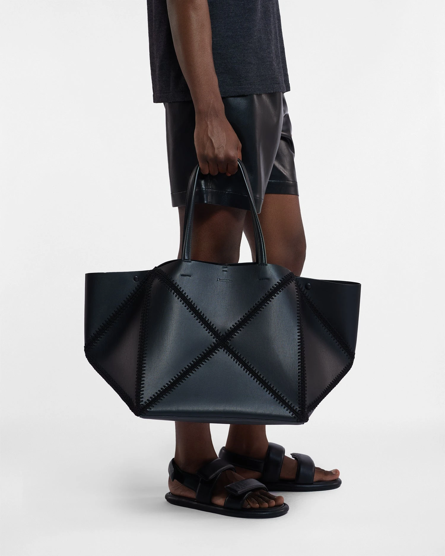 A bag for modern life, the oversized Origami tote embodies Nanushka’s creative principles. Designed to fold completely flat and hand crocheted in Europe, the Crochet Origami style unites innovation and craftsmanship; instilling function in beauty.