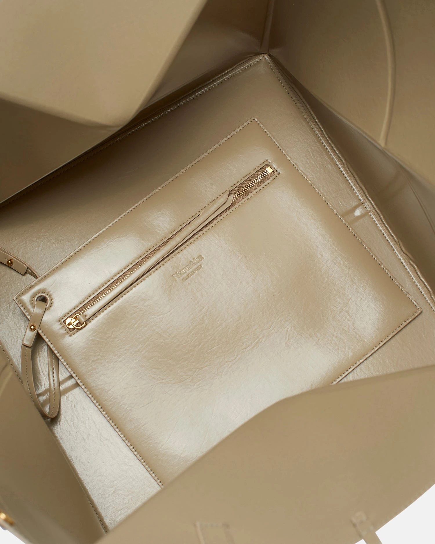 The Origami tote bag combines our dedication to considered design with practicality. Folding completely flat, it is updated in a soft pebble hue and has plenty of room for your day-to-day essentials – along with comfortable, easy-to-carry shoulder straps. It is crafted from signature patent alt-nappa leather for longevity.