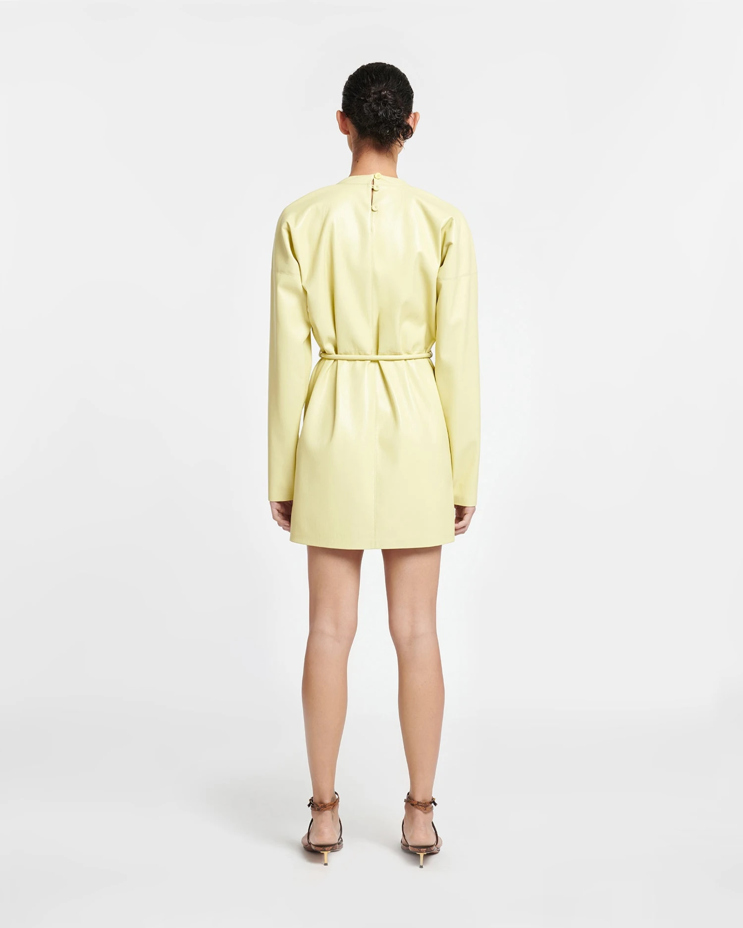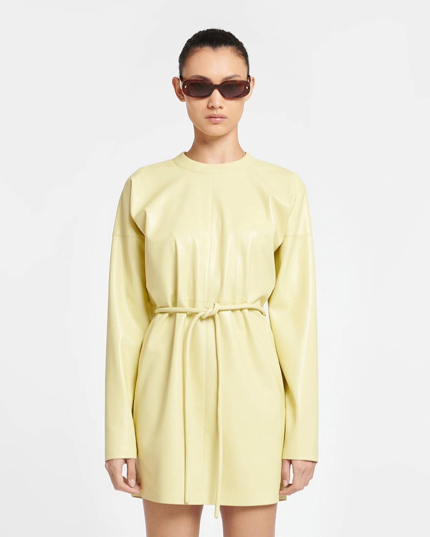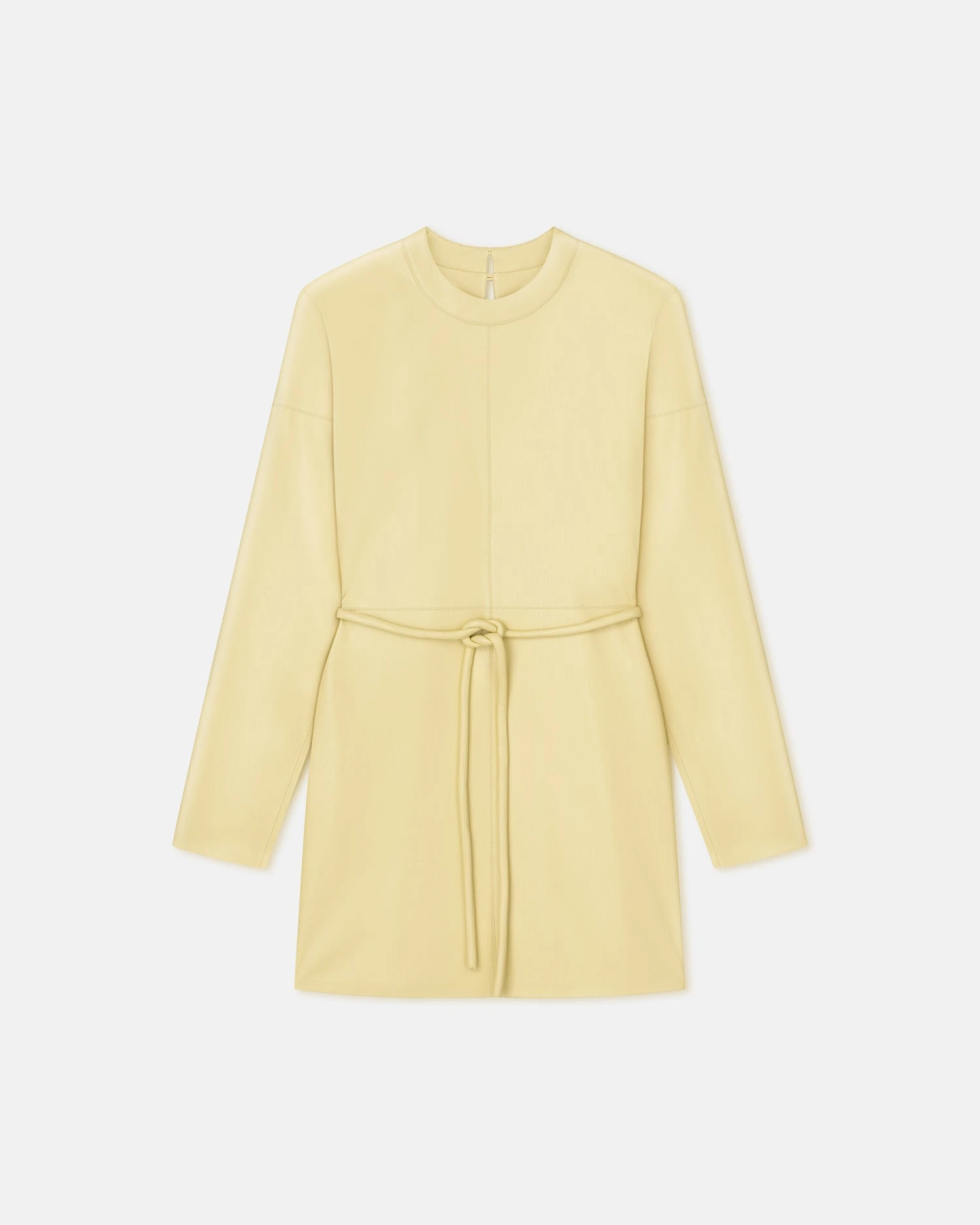 The Vanessa dress is made from our soft and supple Okobor™ alt-leather for a relaxed fit – use the accompanying tubular belt to cinch the waist. It has long sleeves to balance the mid-thigh length and comes in an uplifting lemongrass hue.