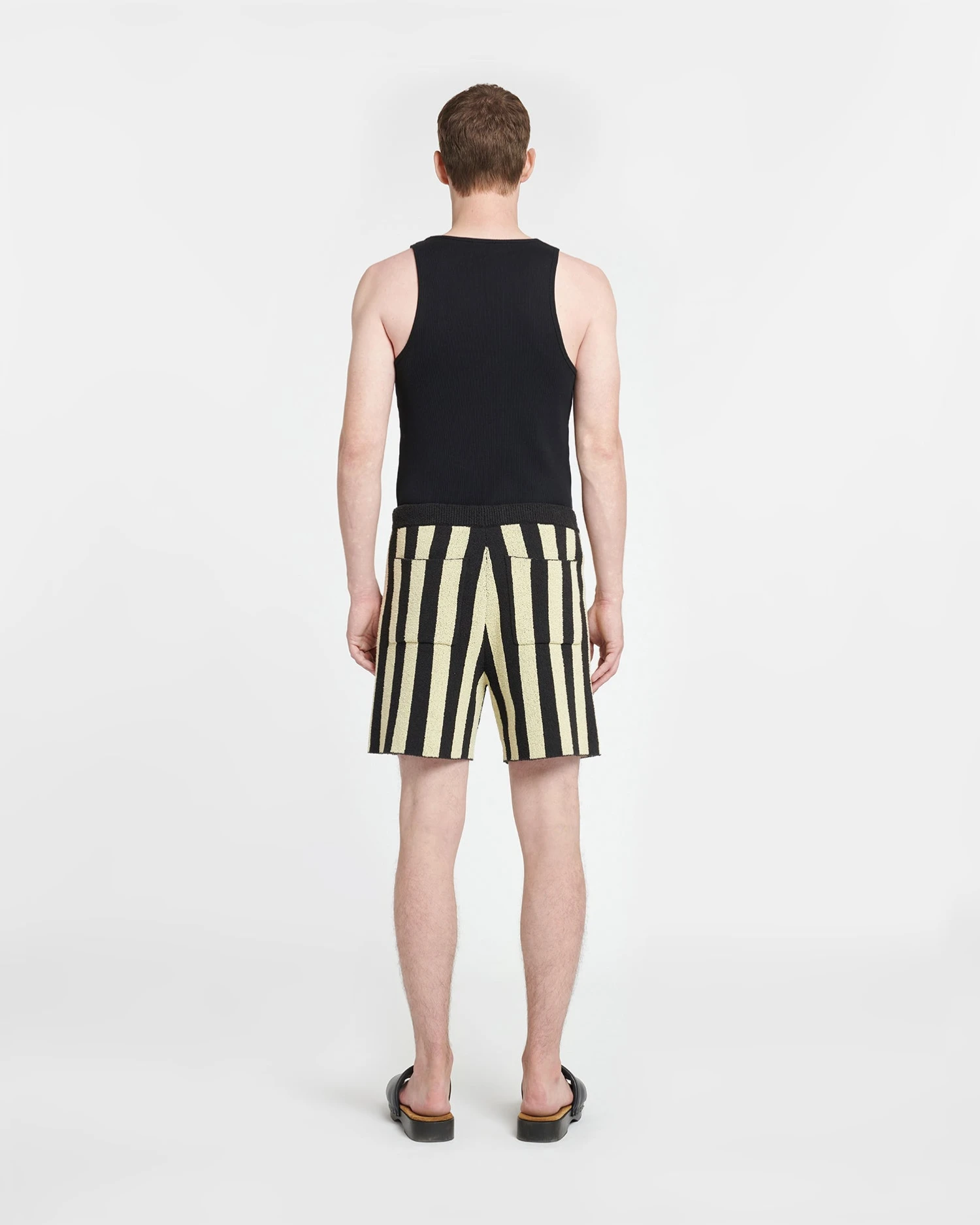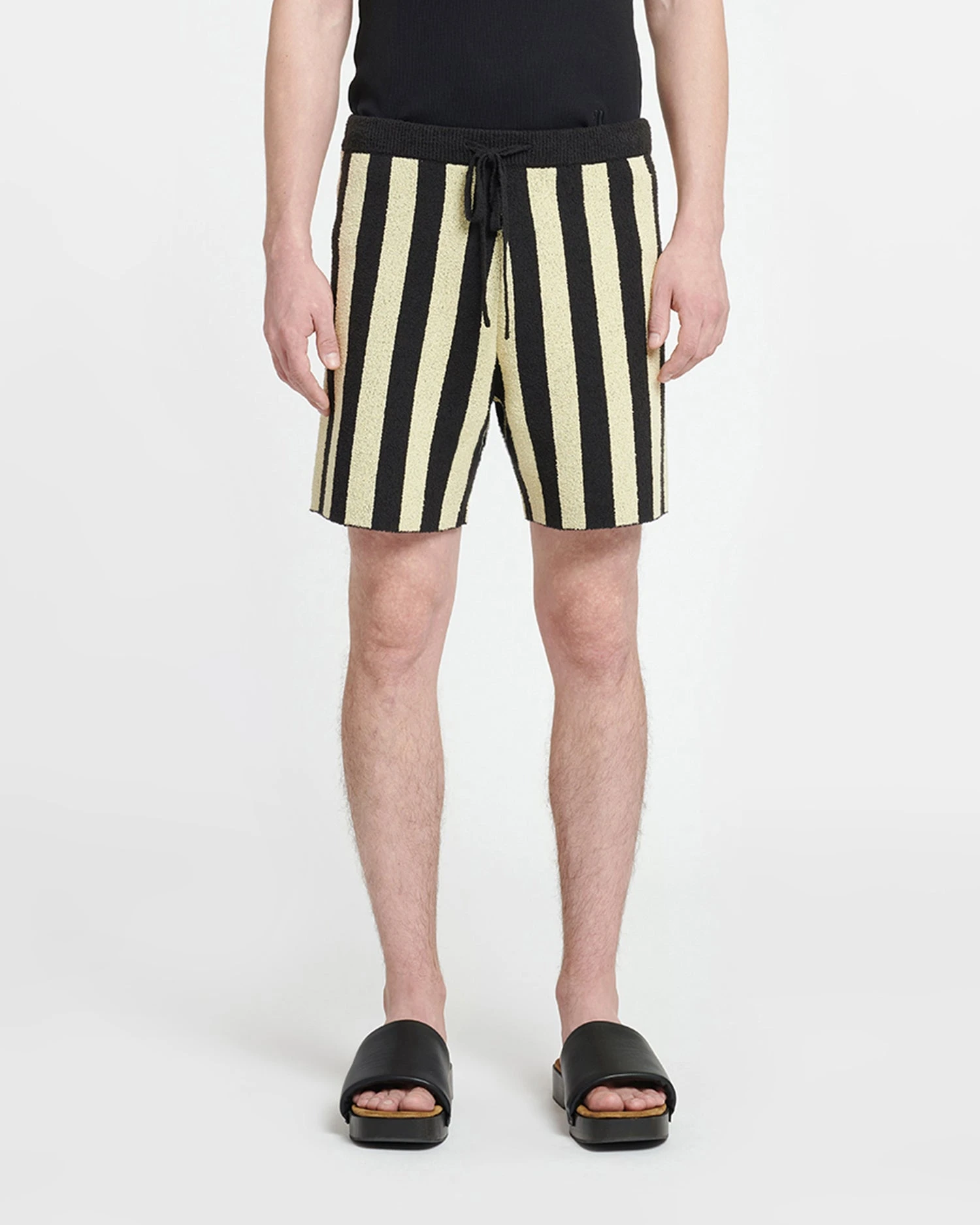 The Walter shorts have a comfortable straight-leg shape accentuated by the contrasting pale yellow and black stripes. They are made from terry that is equally absorbent and soft, and finished with a drawstring waist.