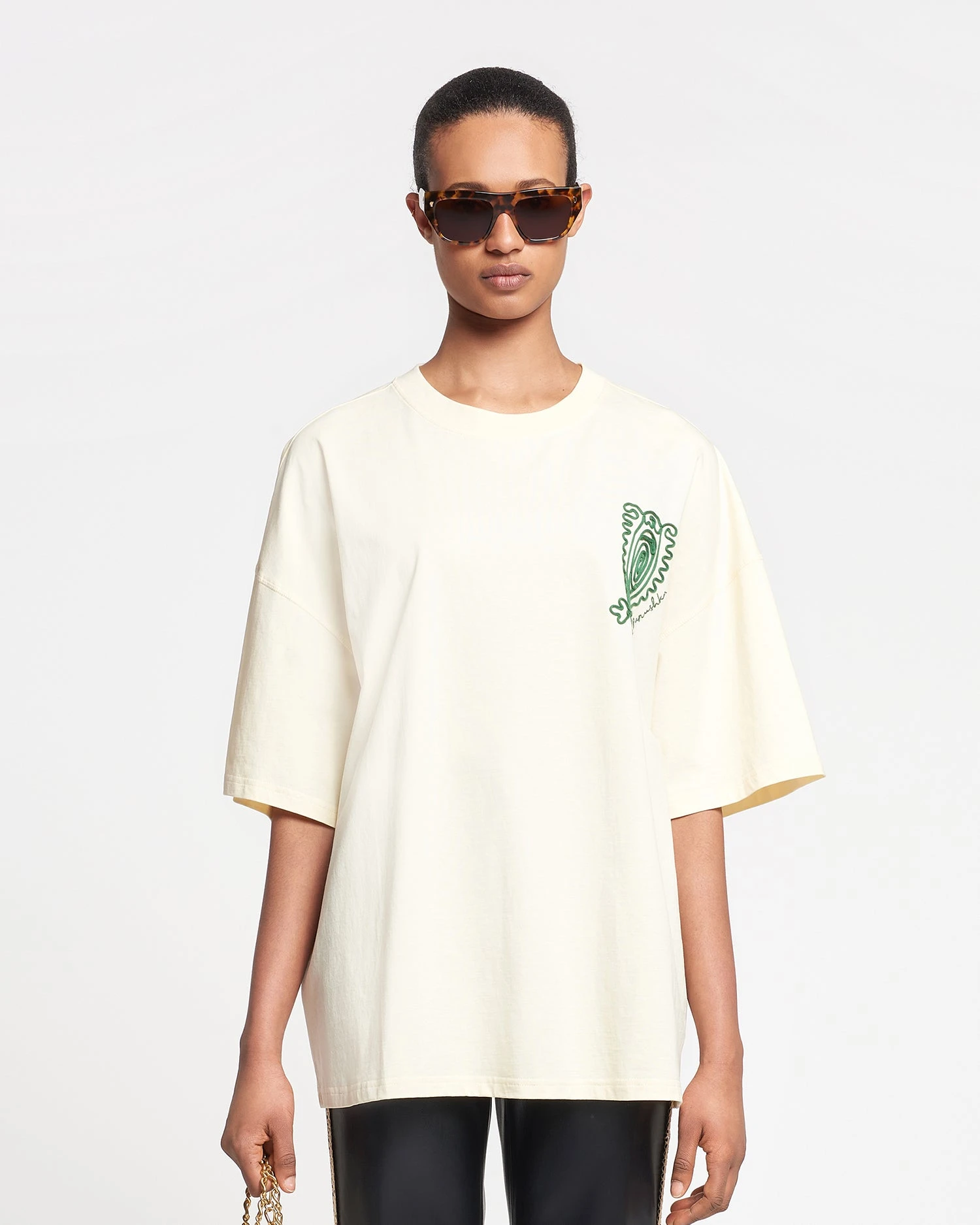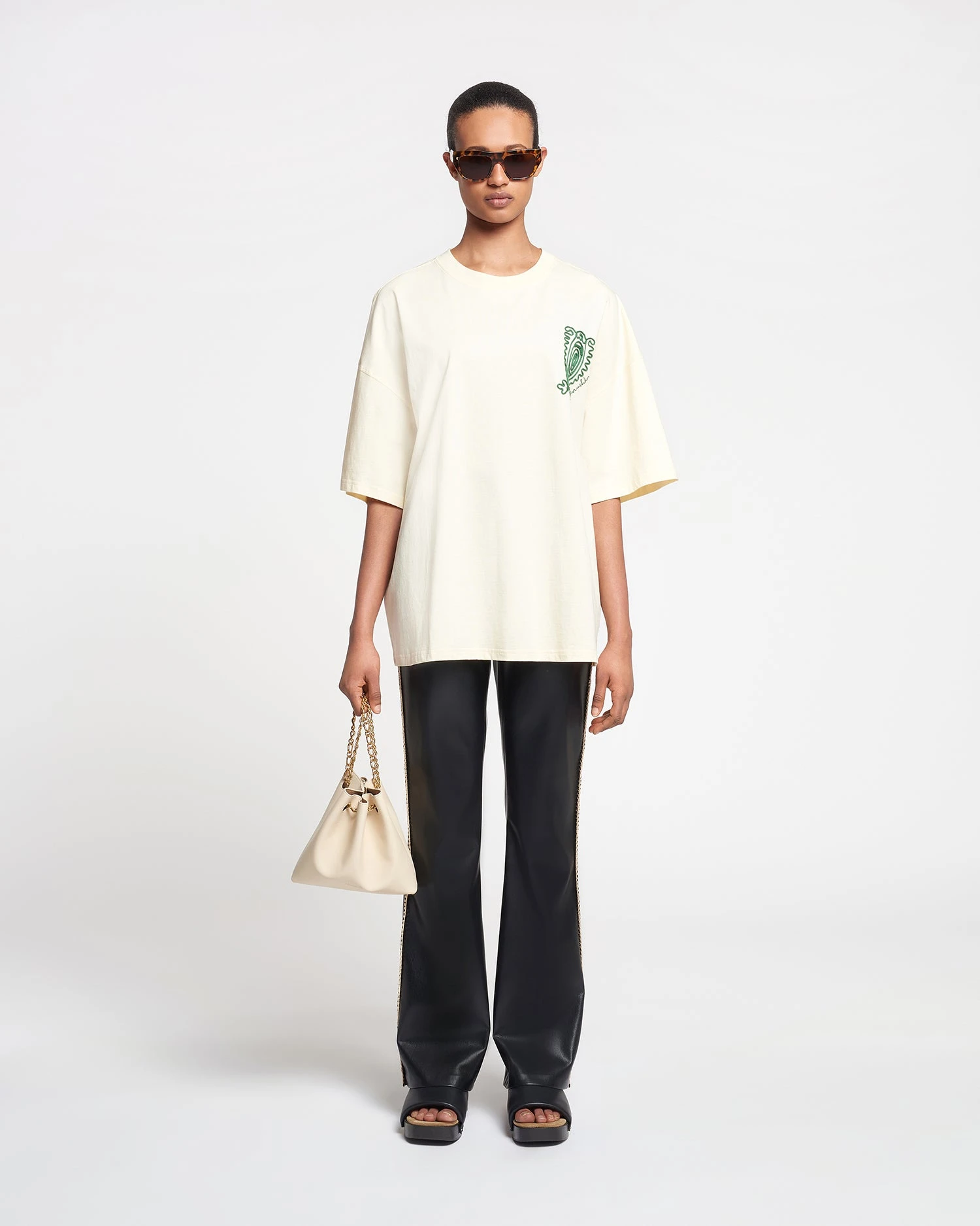 The Wren T-shirt is embroidered with an intricate floral motif in contrasting green threads at the chest. Cut from soft heavyweight cotton jersey, it has an oversized fit and a classic crew neckline for timeless versatility.