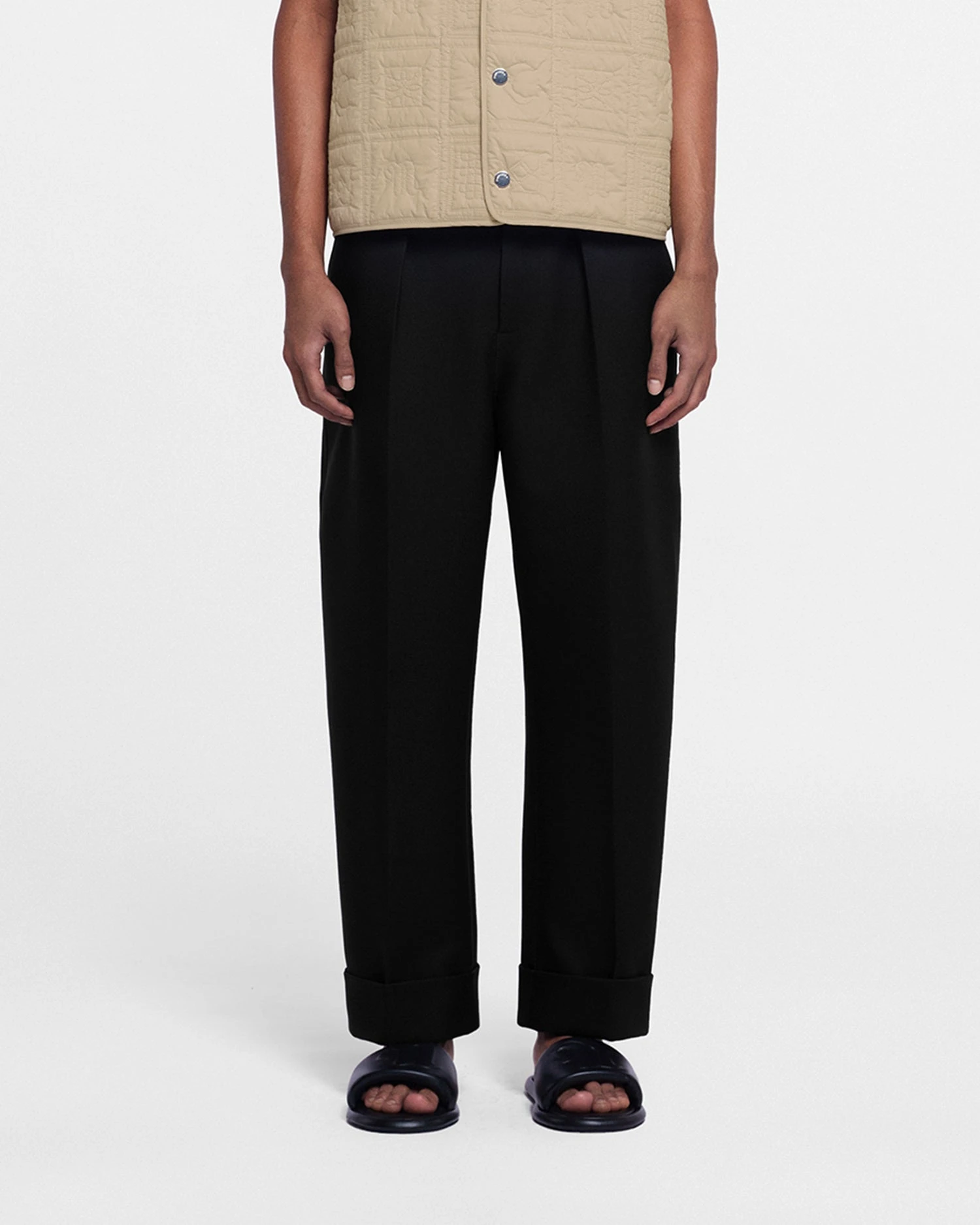 The Zayden pants showcase our definition of modern elegance. They are tailored from our double suiting fabric and characterised by tapered barrel legs ā accentuated by pressed creases and turn-up hems.