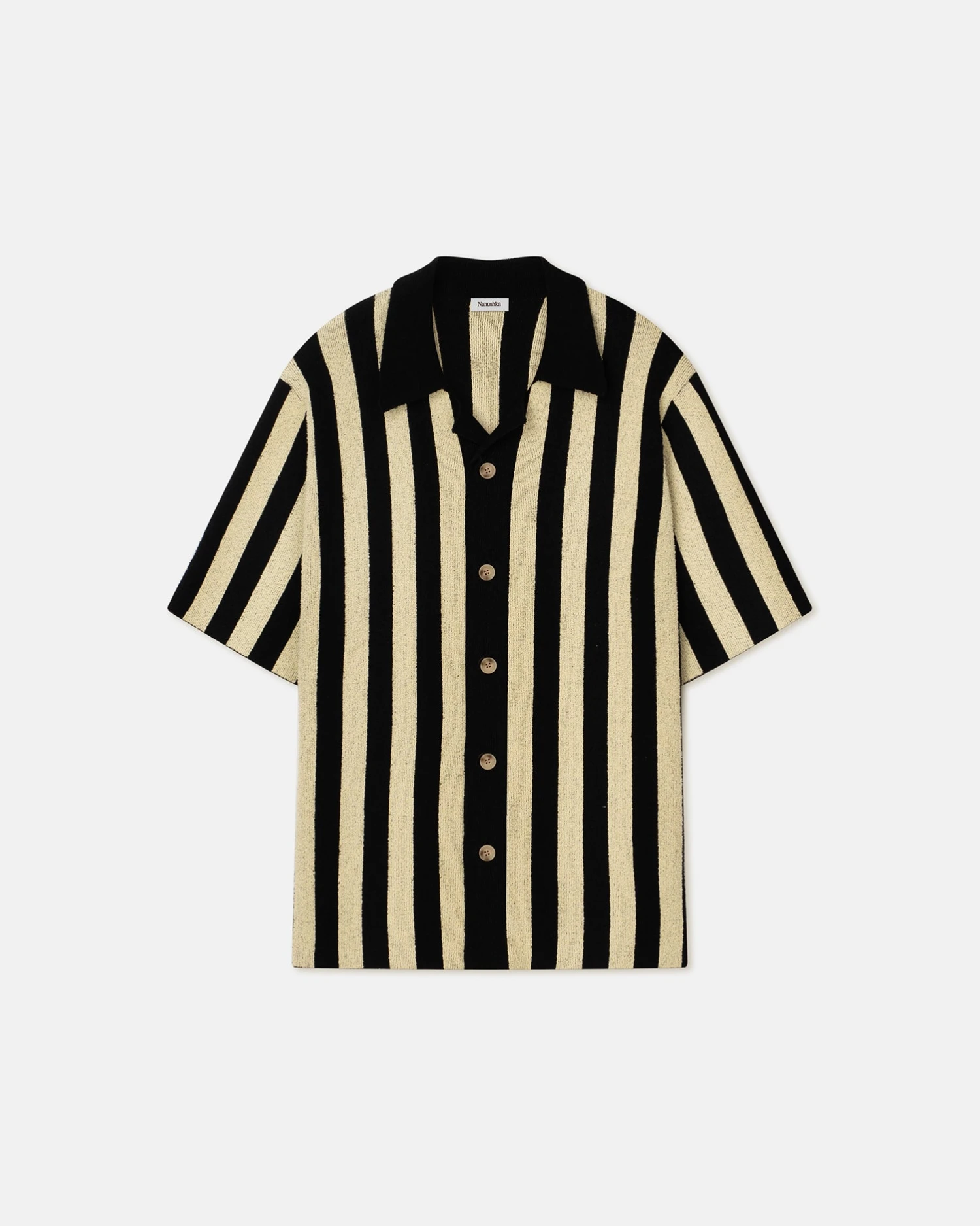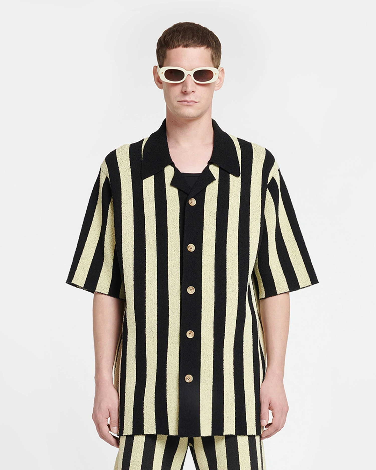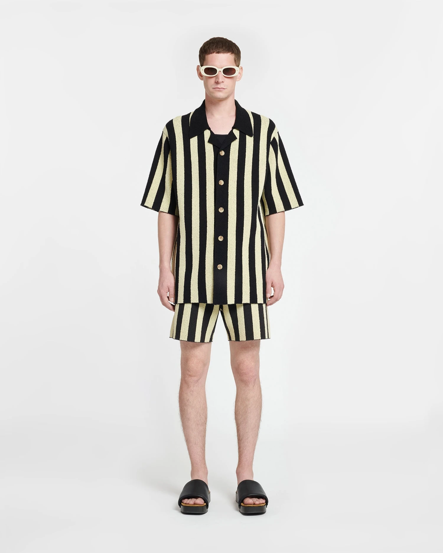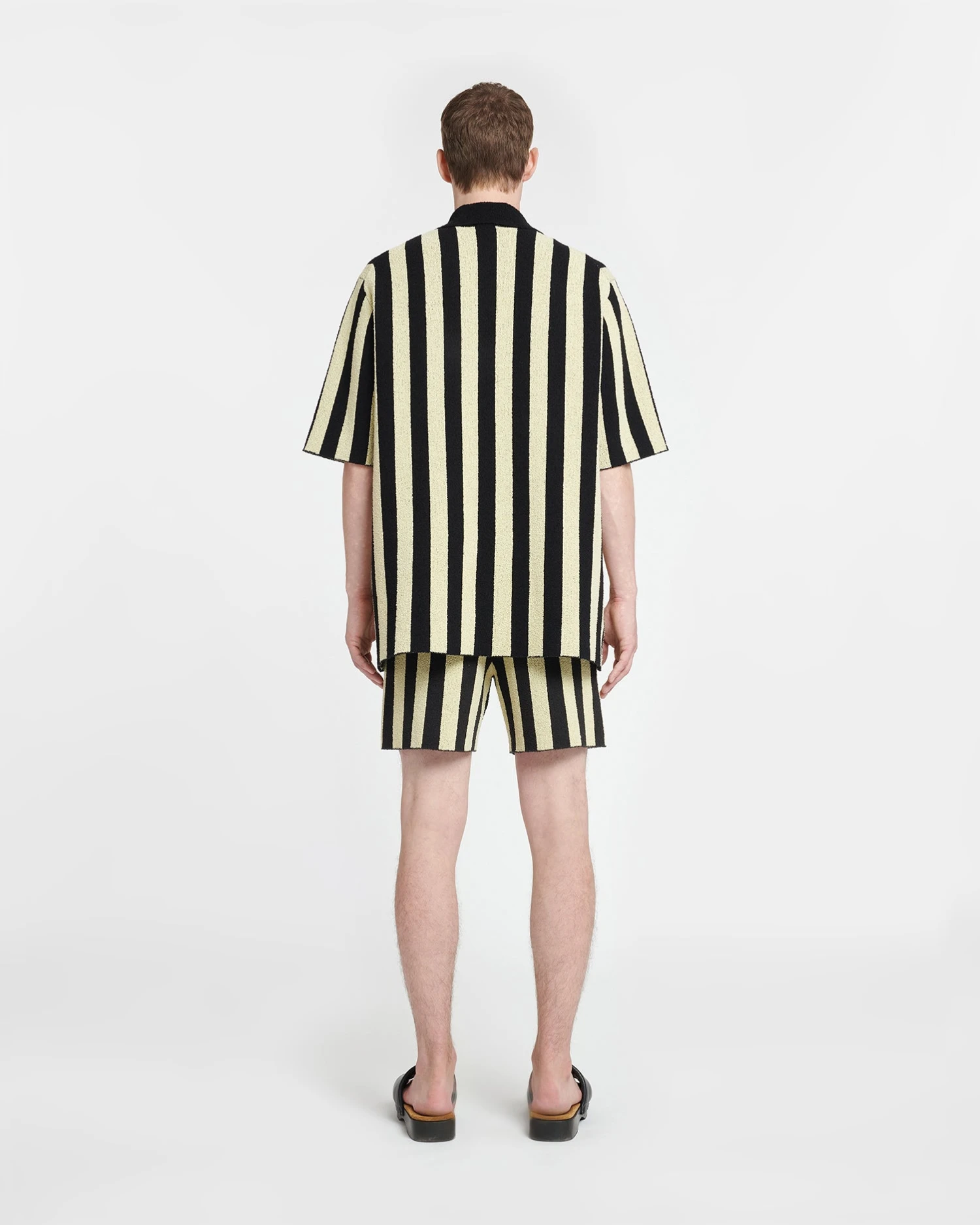The Ziko shirt has a neat straight fit outlined by the pale yellow and black stripes. Designed to be worn with the matching Walter shorts, it is knitted from soft terry with contrasting button fastenings.